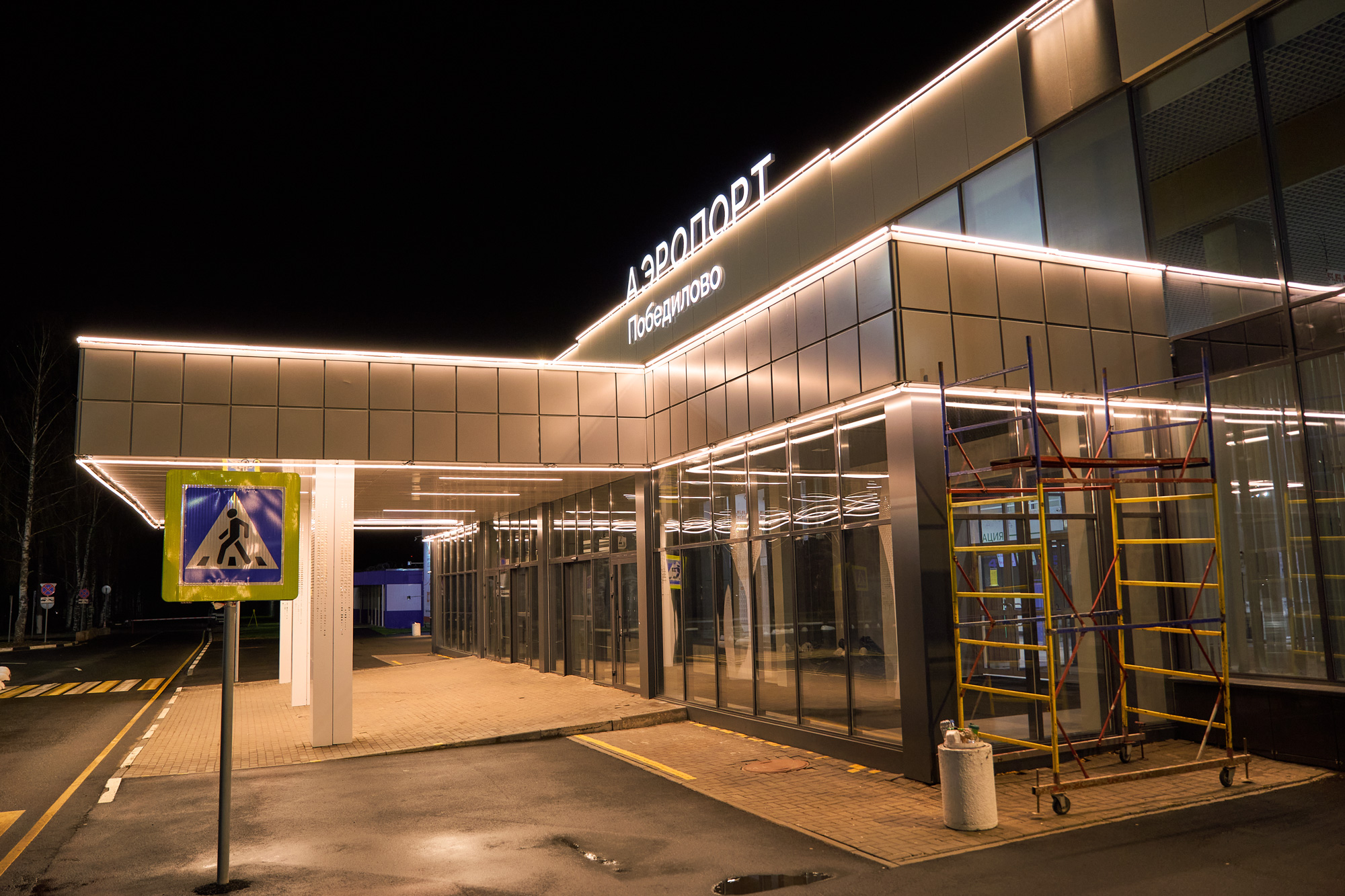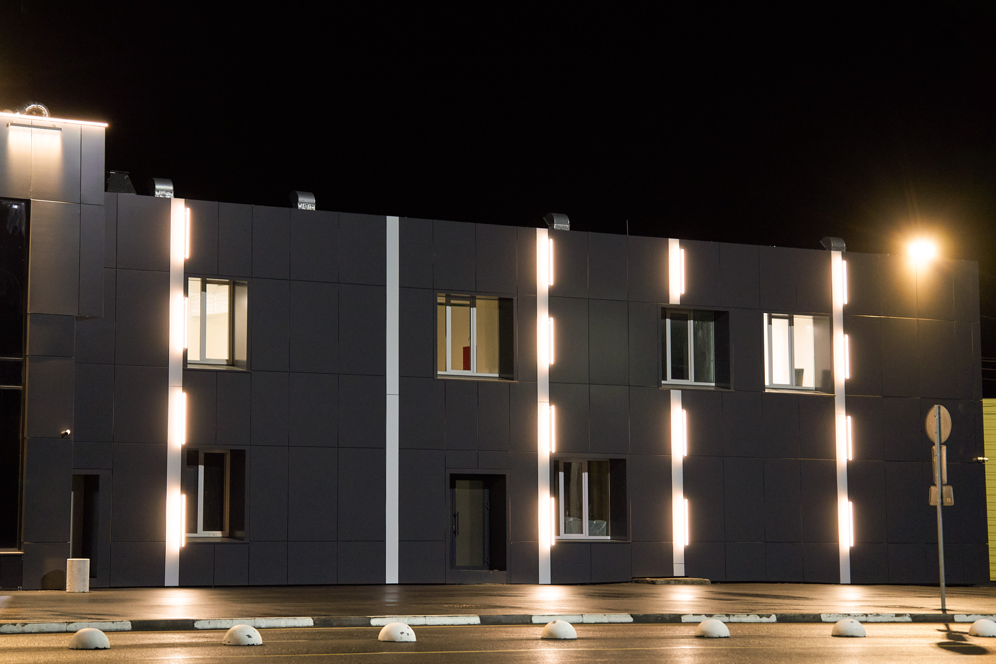 официальным партнером PromLED – ООО «Свет Энд Лайт» – было подобрано светотехническое оборудование. Подсветка фасада реализована с помощью архитектурных светильников серий «Модерн» и «Барокко». Для освещения входного пространства было применено нестандартное решение – светильник «Элегант Встраиваемый» с использованием драйвера со степенью пылевлагозащиты IP67.