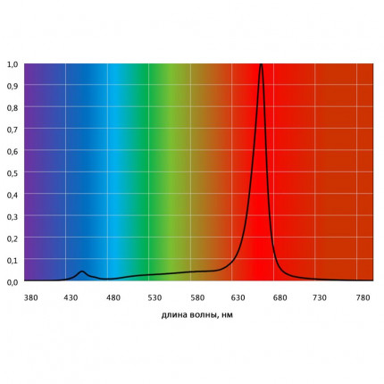| Энергетическое красно-зелено-синее отношение в области ФАР (600-700; 500-600; 400-500 нм), [К:З:С; %]: | 81:13:6 |