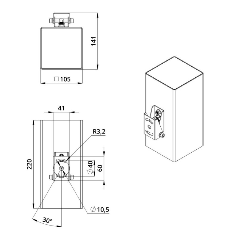 Прожектор крепится на поверхность с помощью стального поворотного кронштейна с возможностью регулировки угла наклона на ±5°.