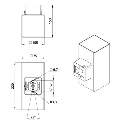 Экструдированный корпус из анодированного алюминия в квадратном форм-факторе. Покрытие — порошковая краска, защищающая корпус от агрессивного внешнего воздействия.