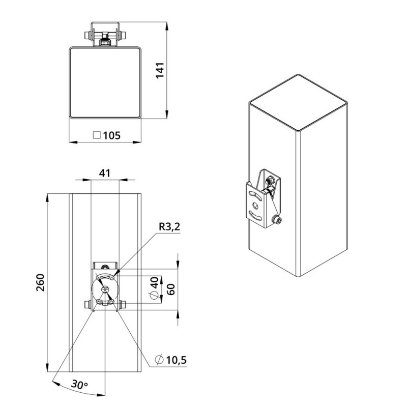 Прожектор крепится на поверхность с помощью стального поворотного кронштейна с возможностью регулировки угла наклона на ±5°.