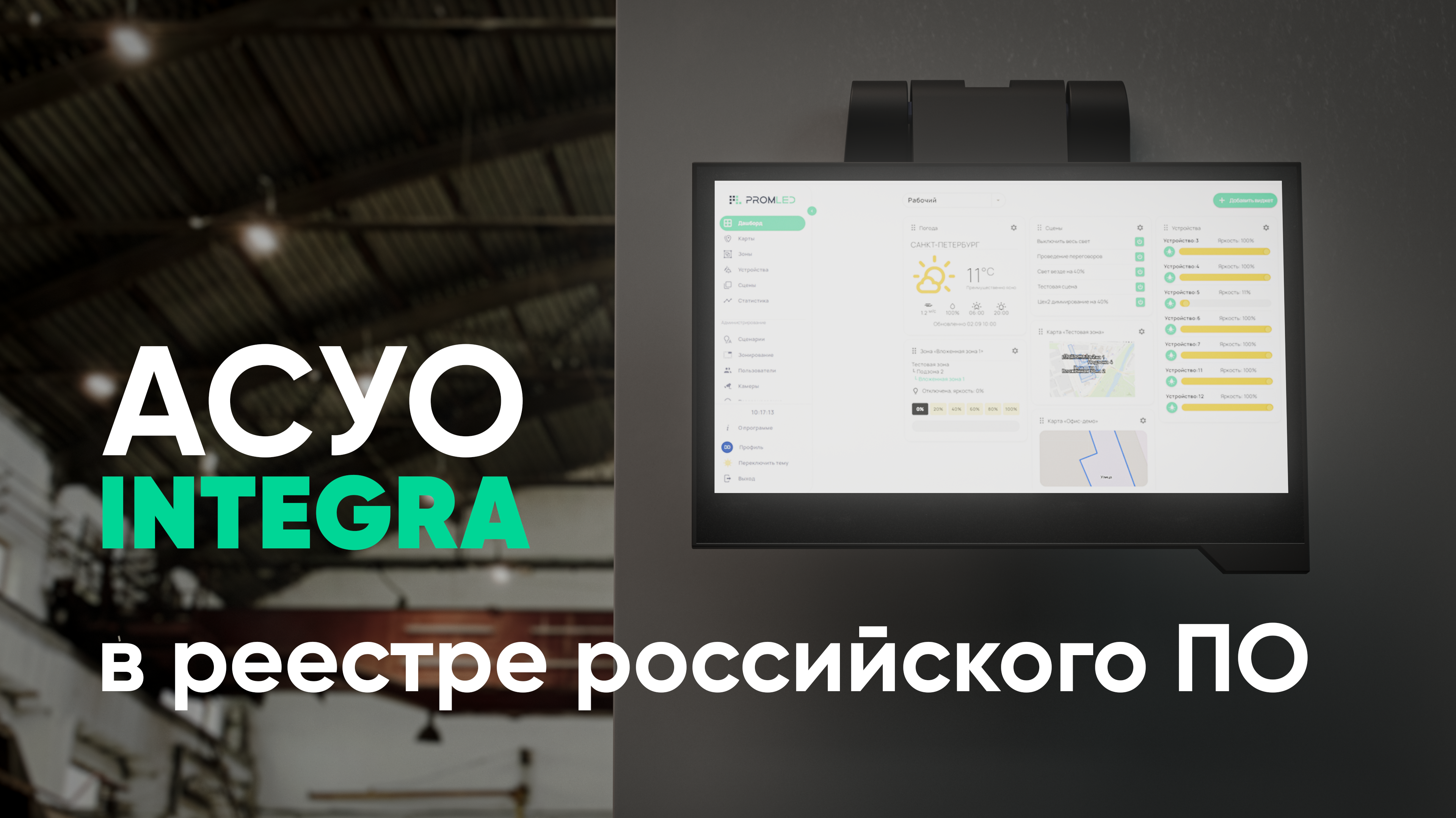 Автоматизированная система управления освещением Integra, являющаяся собственной разработкой PromLED, добавлена в реестр российского ПО.