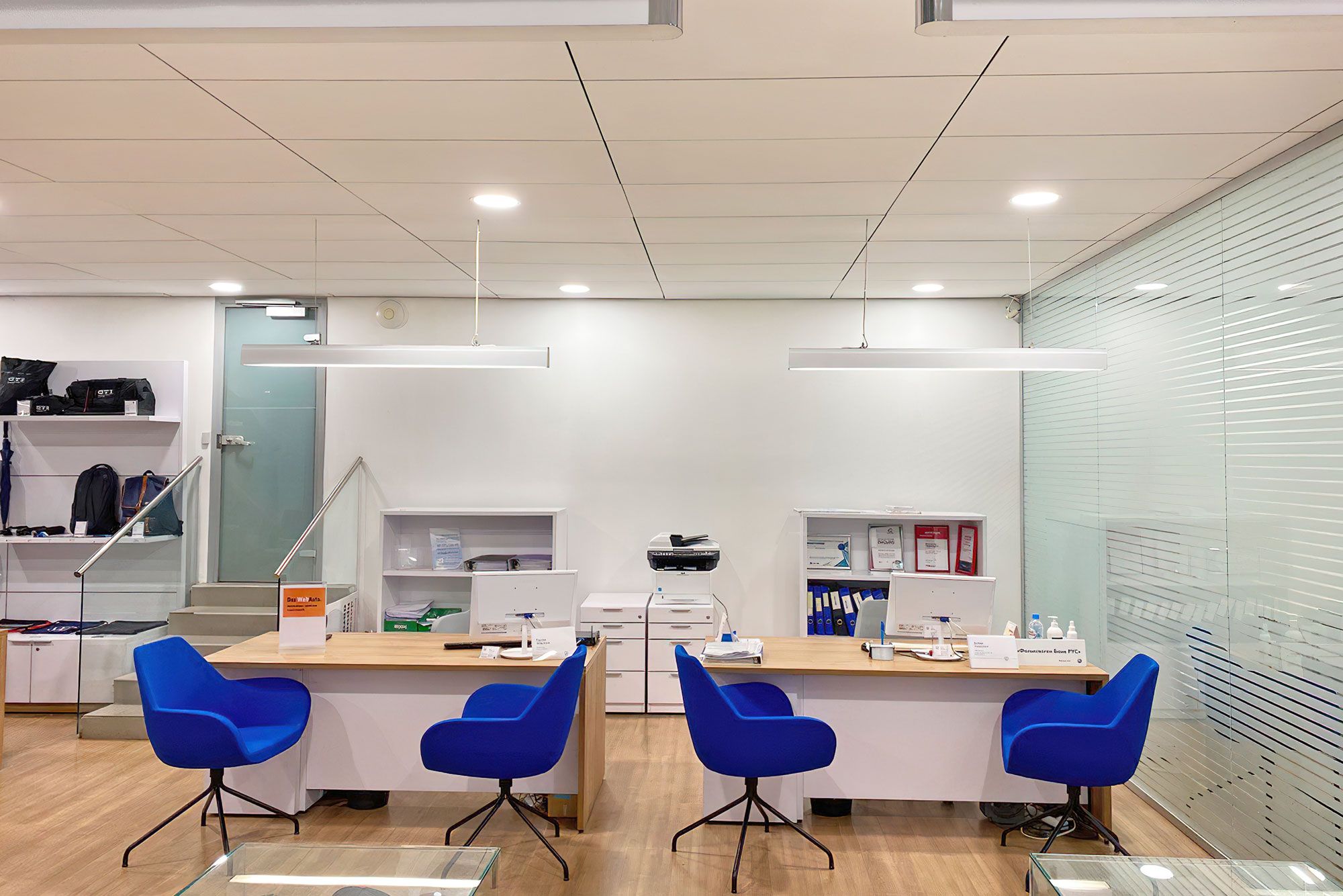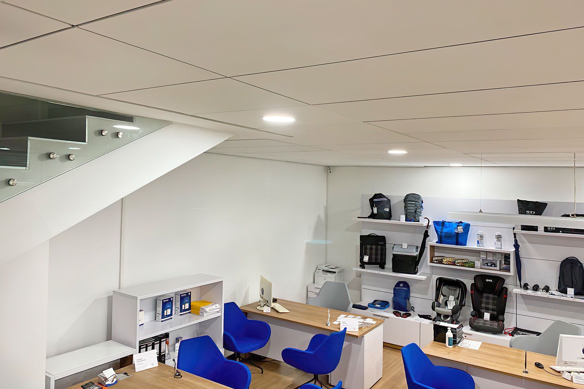 Предложенное осветительное решение: установили светодиодные светильники Даунлайт 25 L 4000К Опал в количестве 60 штук.