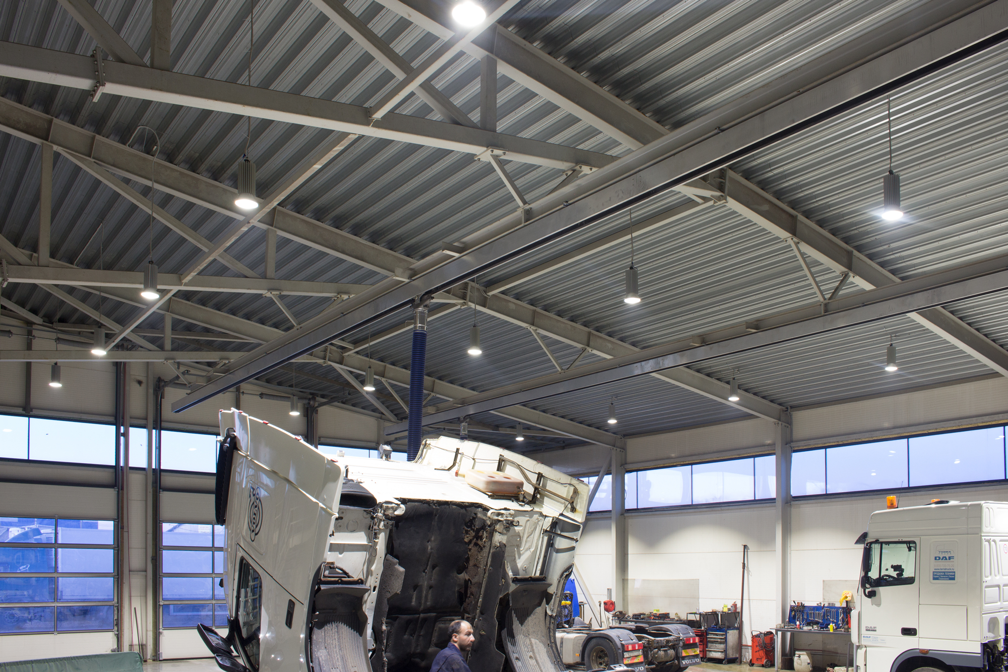Предложенное осветительное решение: установили светодиодные светильники Т-Линия v2.0 80 1000мм 5000К Прозрачный в количестве 45 штук. Специально под данный проект были спроектированы светильники Профи v2.0 150 4500К 90° в количестве 24 штук.