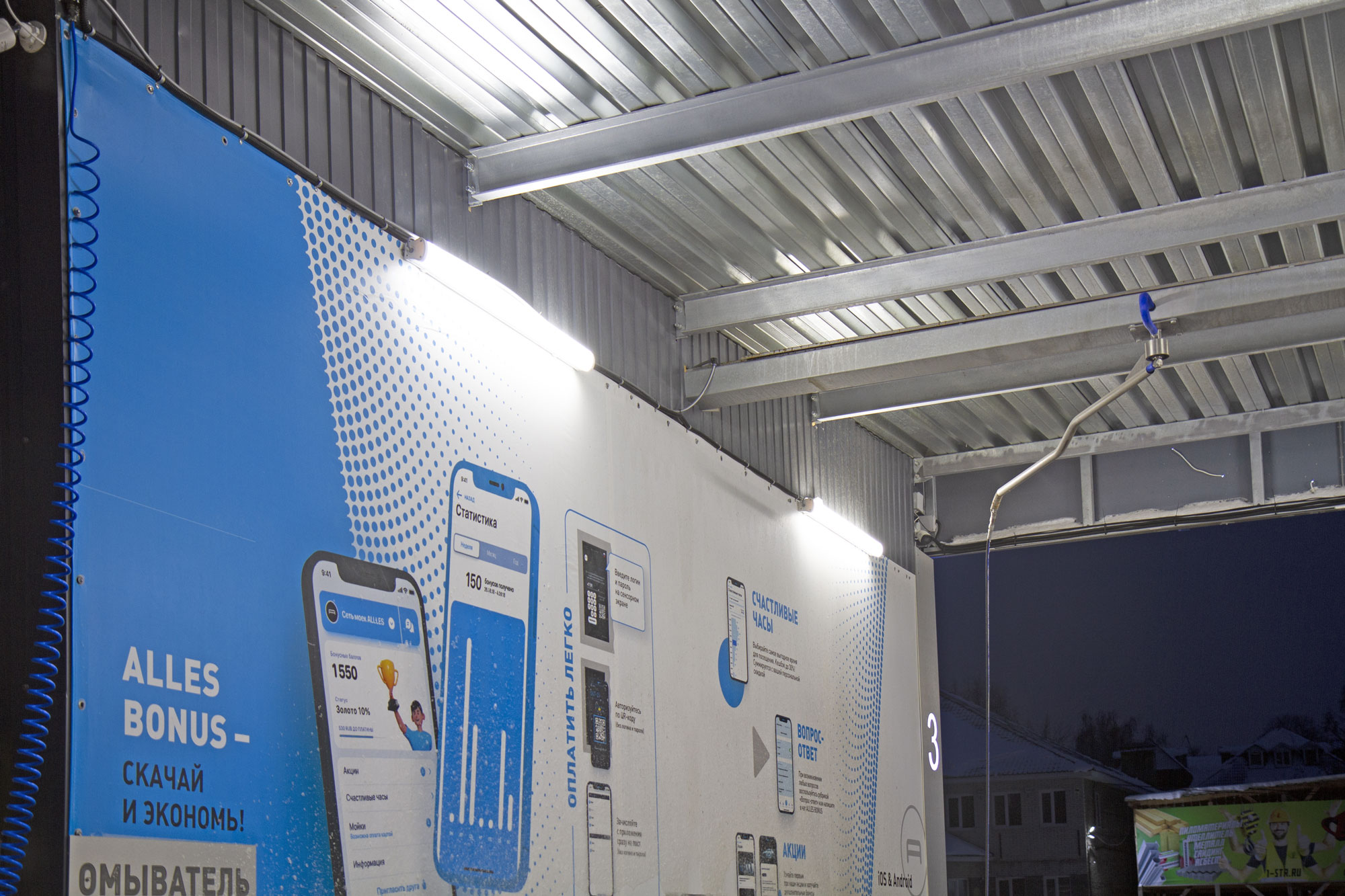 Поставленная задача: Осветить боксы автомойки и подъезд к ним.