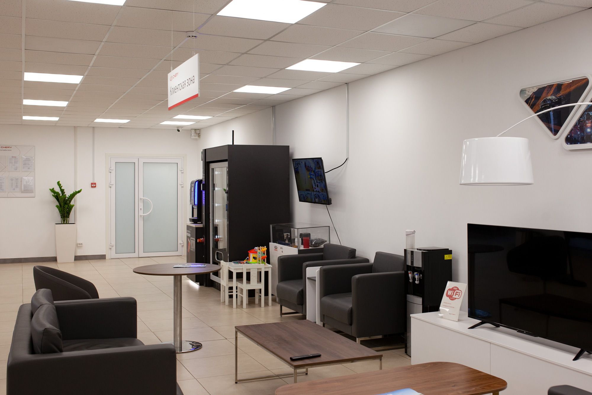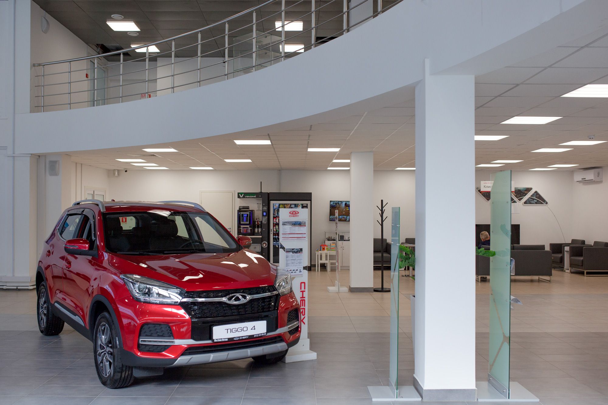 Поставленная задача: выполнить комплексное освещение помещений автосалона: клиентской зоны, зоны СТО.