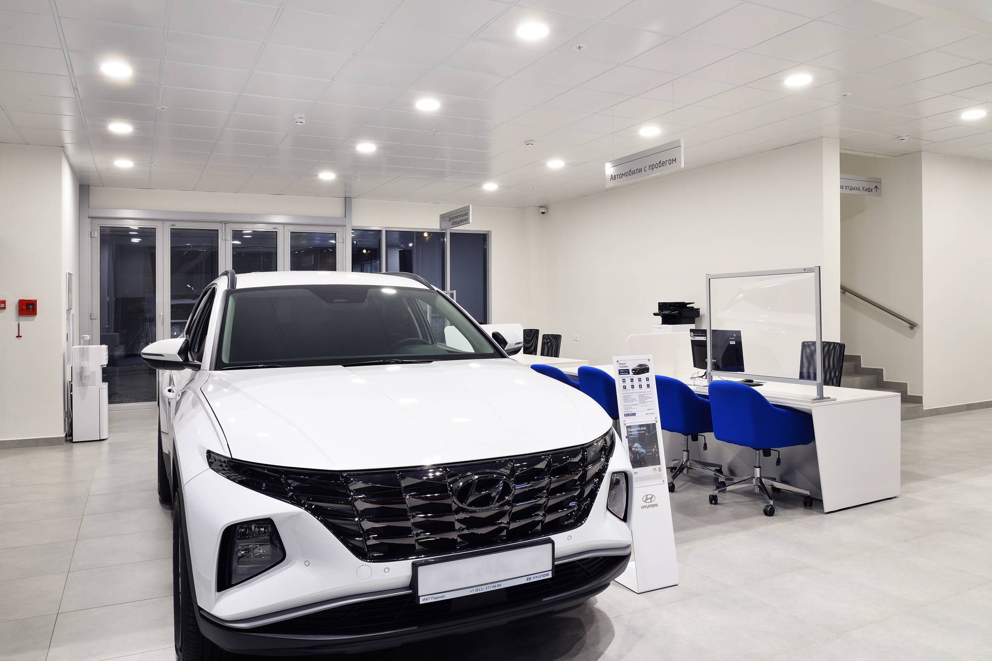 Предложенное осветительное решение: инженеры нашей компании совместно с нашими партнёрами ООО «Люмсмарт» выполнили СТР помещений салона Hyundai. Для обеспечения нужного уровня освещенности были предложены модели светильников: