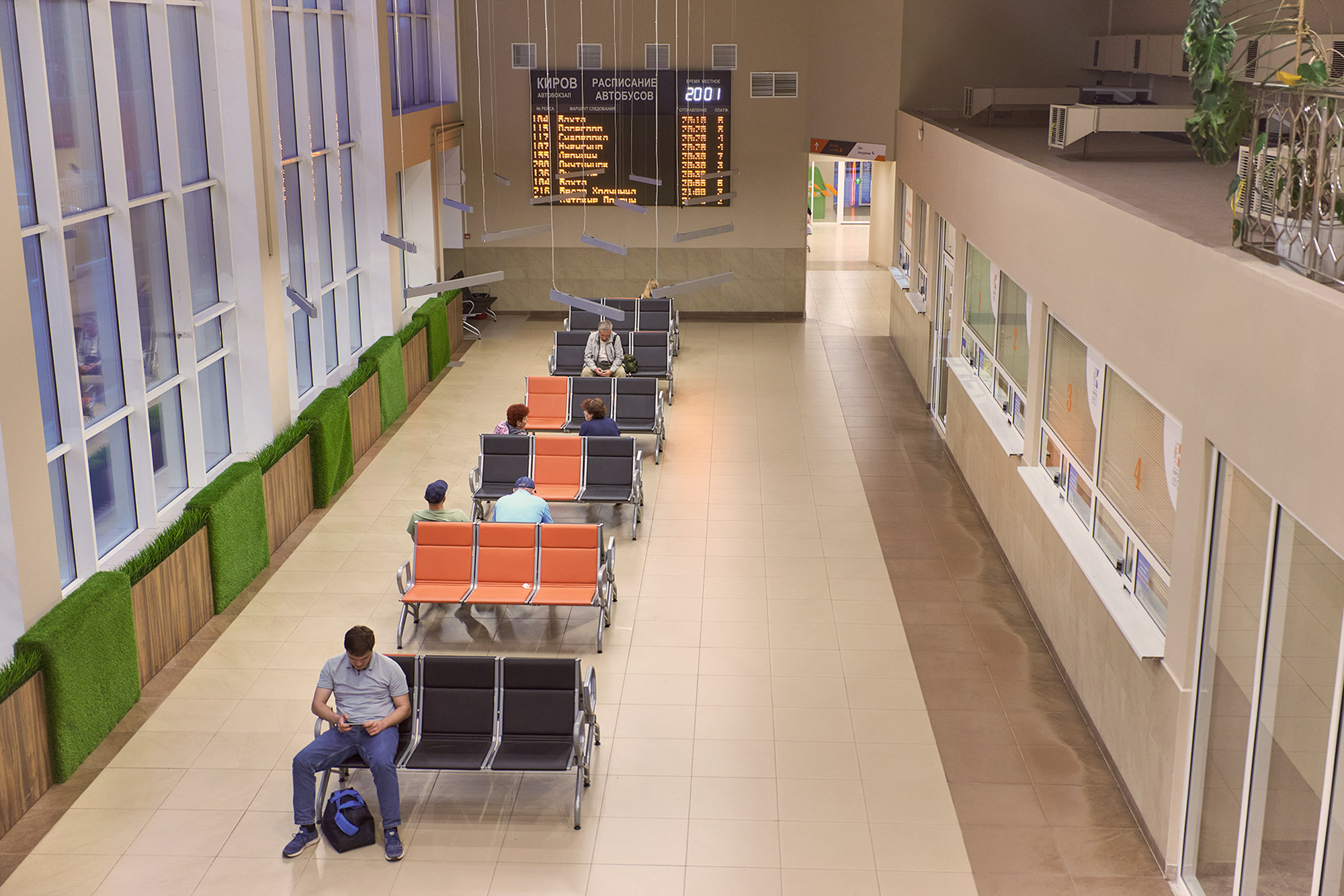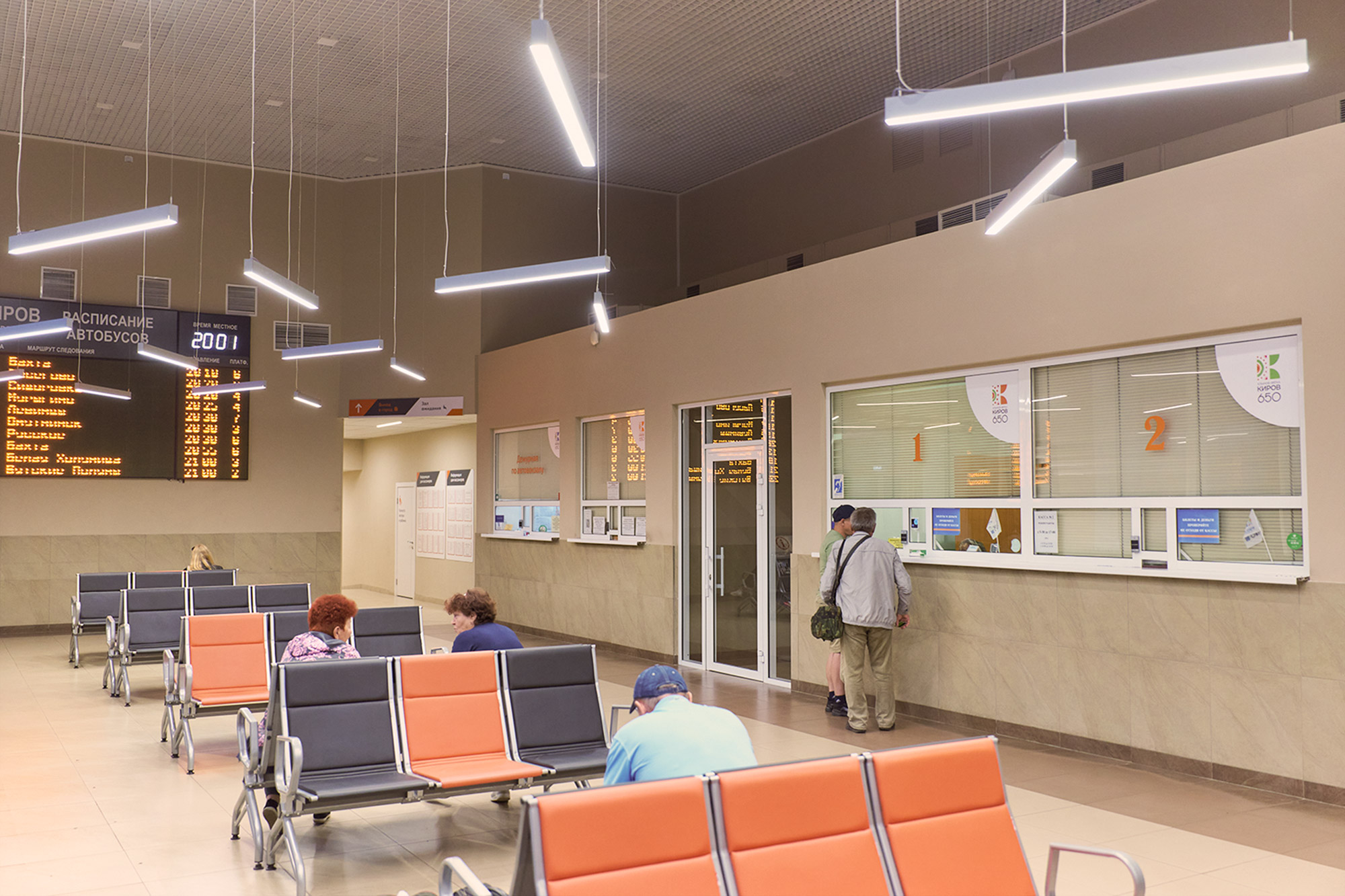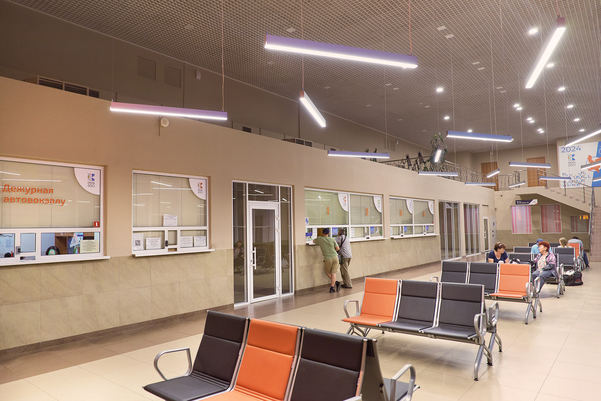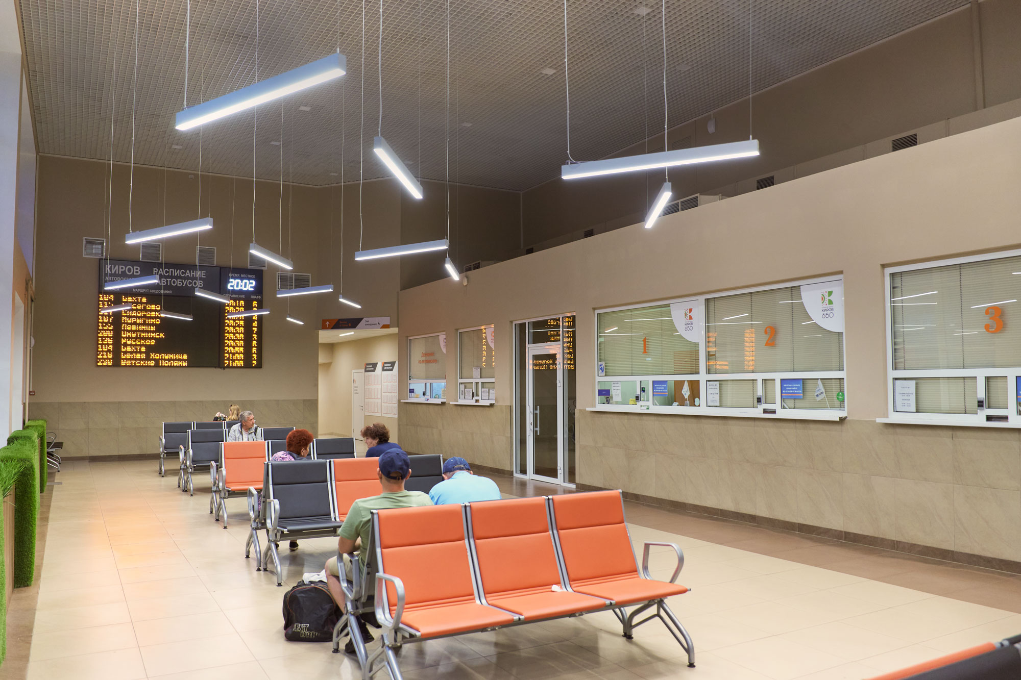 основное и дизайнерское освещение кассовой зоны автовокзала.