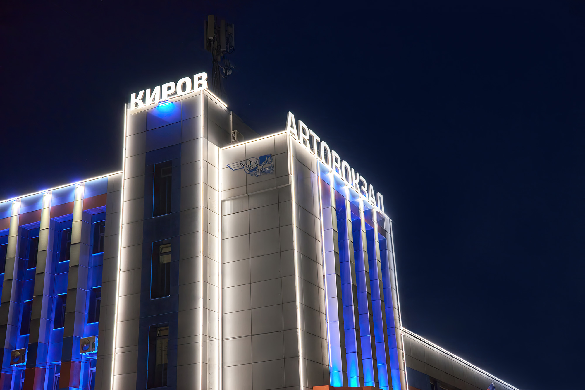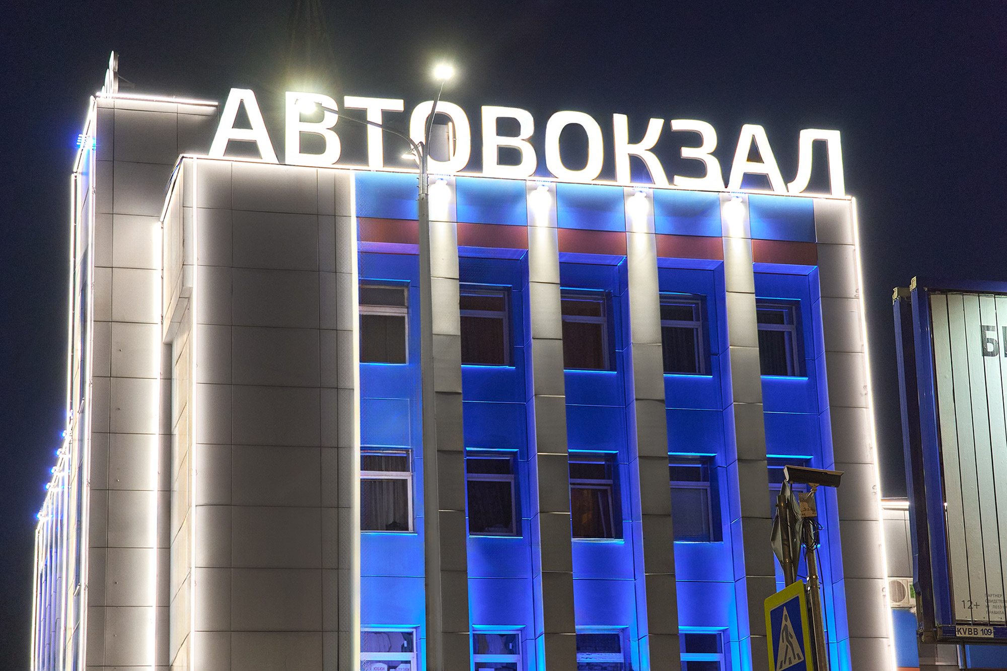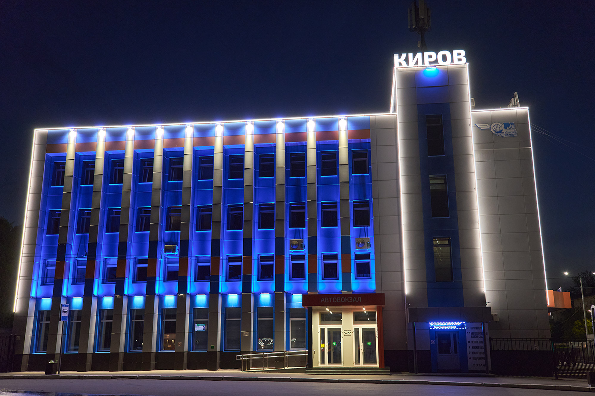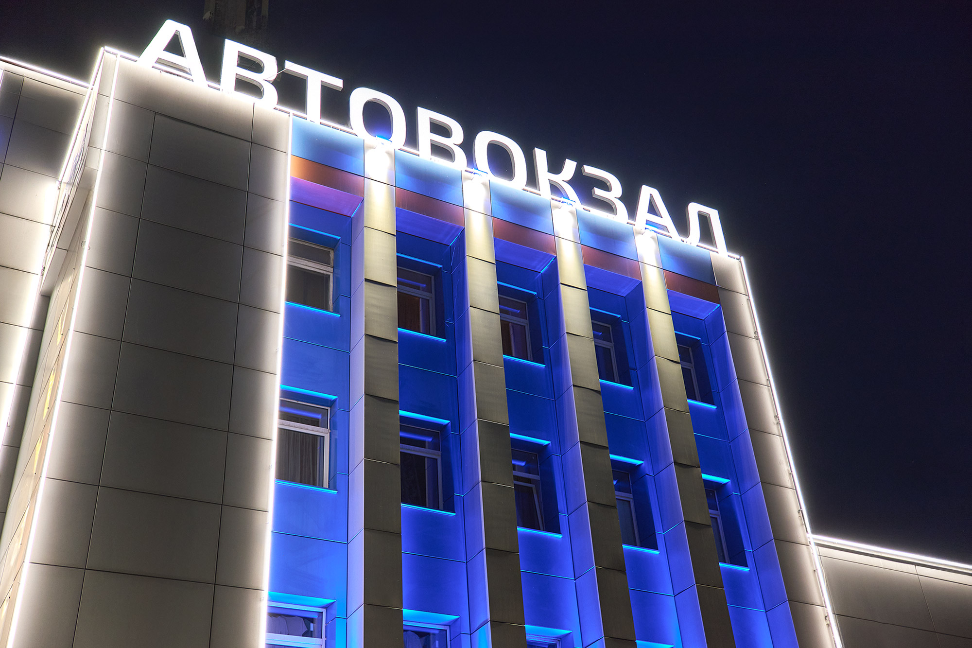 освещение модернизированного фасада здания автовокзала.