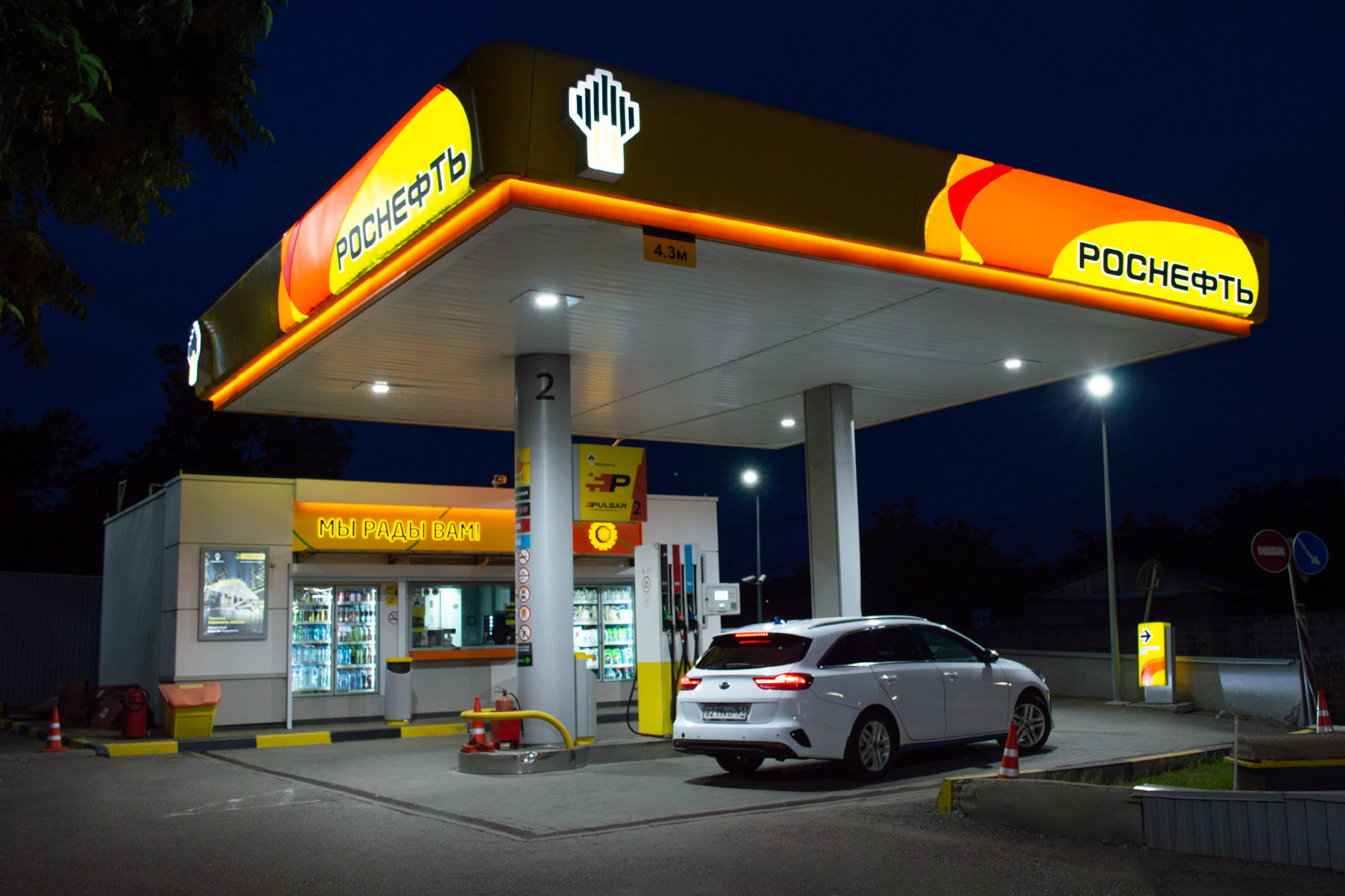 для освещения автозаправочной станции были использованы встраиваемые светильники серии «АЗС». Для освещения уличной территории на подъезде к станции были установлены консольные светильники серии «Гроза S» на литых корпусах.