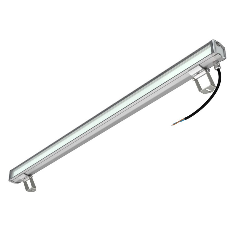 У светильников предусмотрен монтажный профиль с подвижными монтажными скобами, которые перемещаются вдоль корпуса, позволяя скорректировать точки крепления светильника. С помощью этих скоб светильники крепятся на поворотные кронштейны.