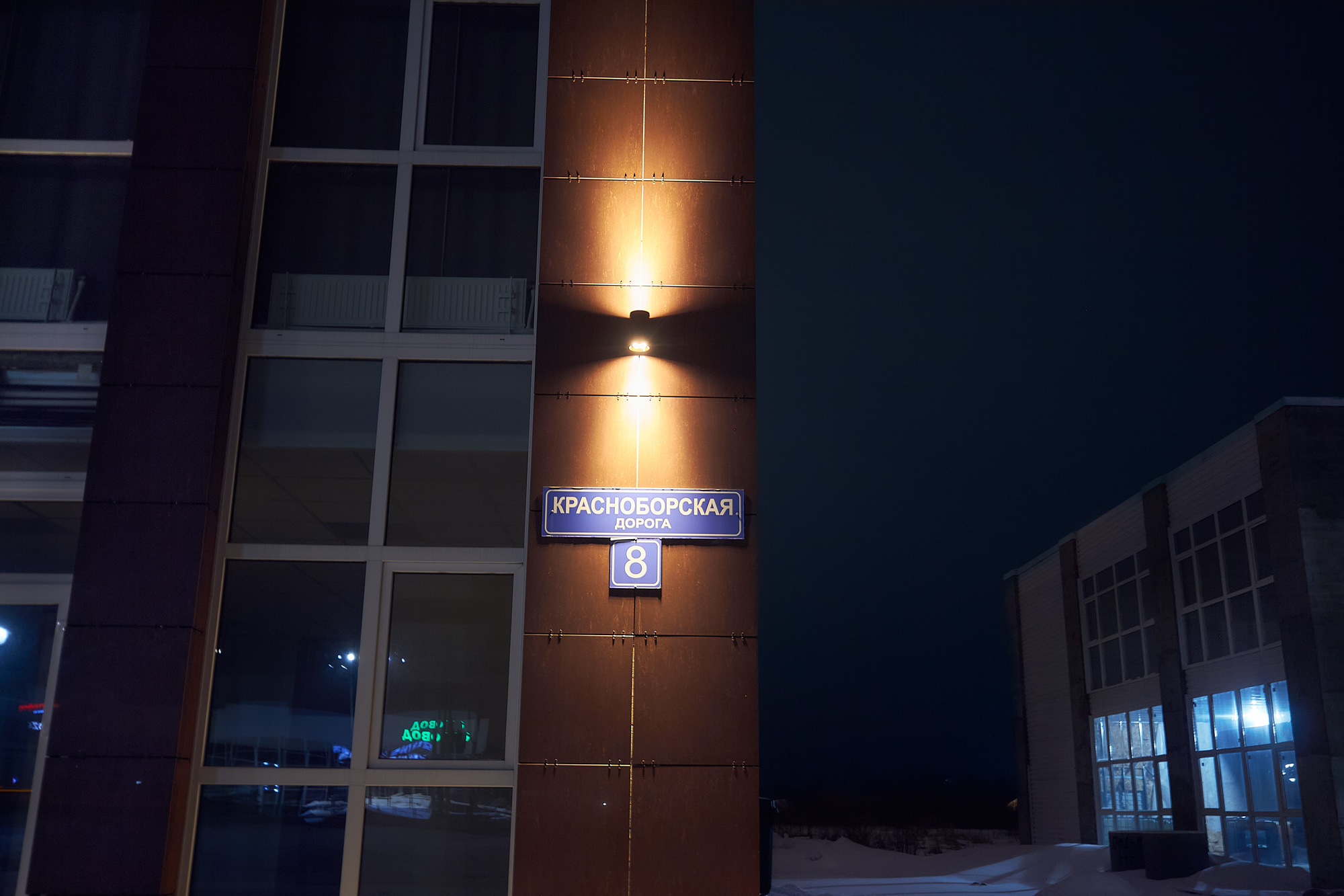 на основании светотехнического расчета выбраны светильники серии «Акцент». Для гармоничной интеграции в архитектурную среду светильники окрашены в цвет фасада (RAL 8017).