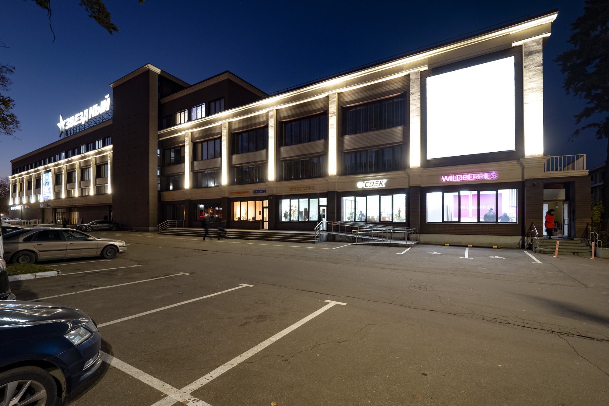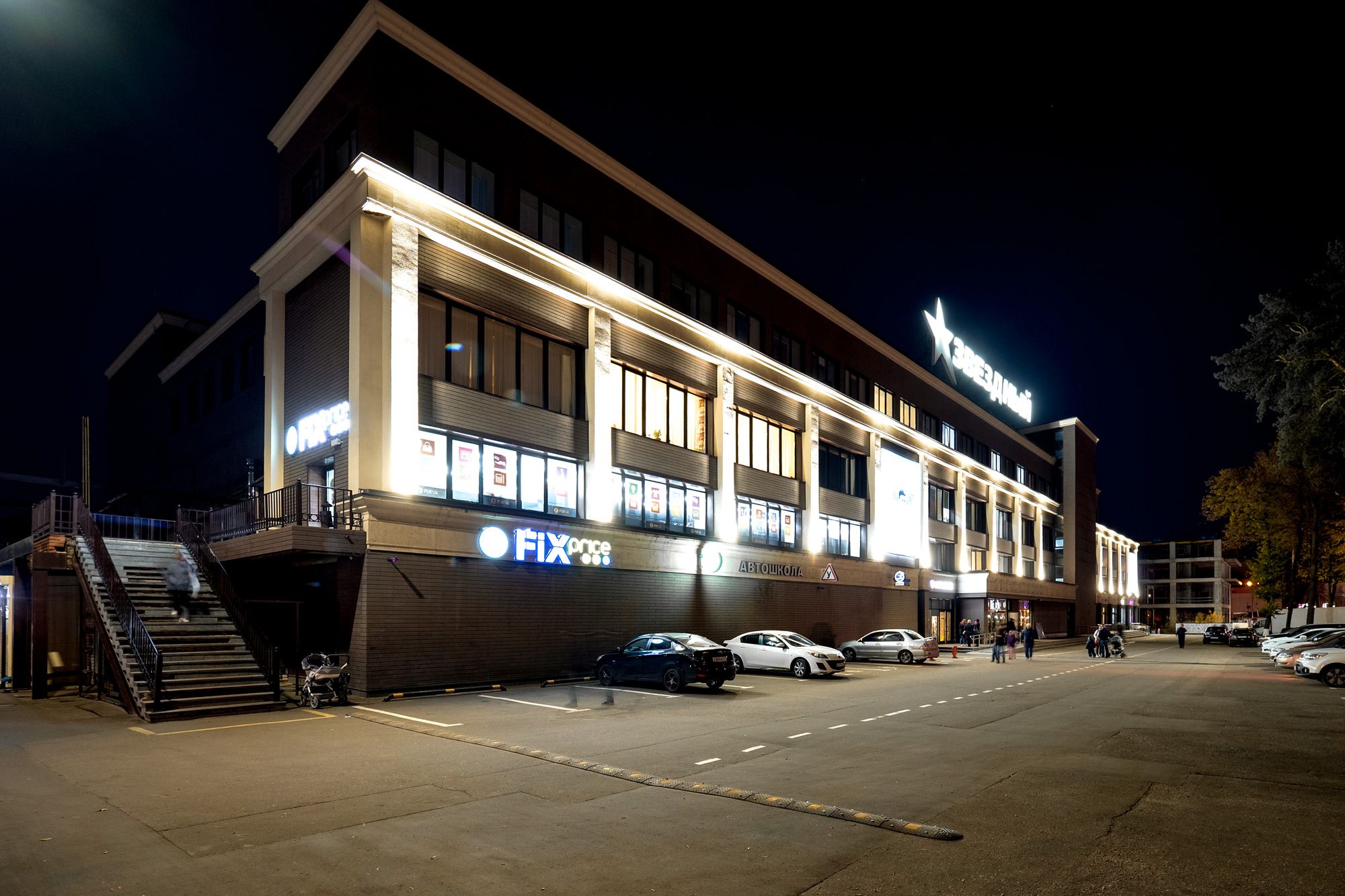 Поставленная задача: заменить устаревшие фасадные прожекторы с галогеновыми лампами. Цель - улучшить внешний вид подсветки фасада бизнес-центра и снизить энергопотребление.