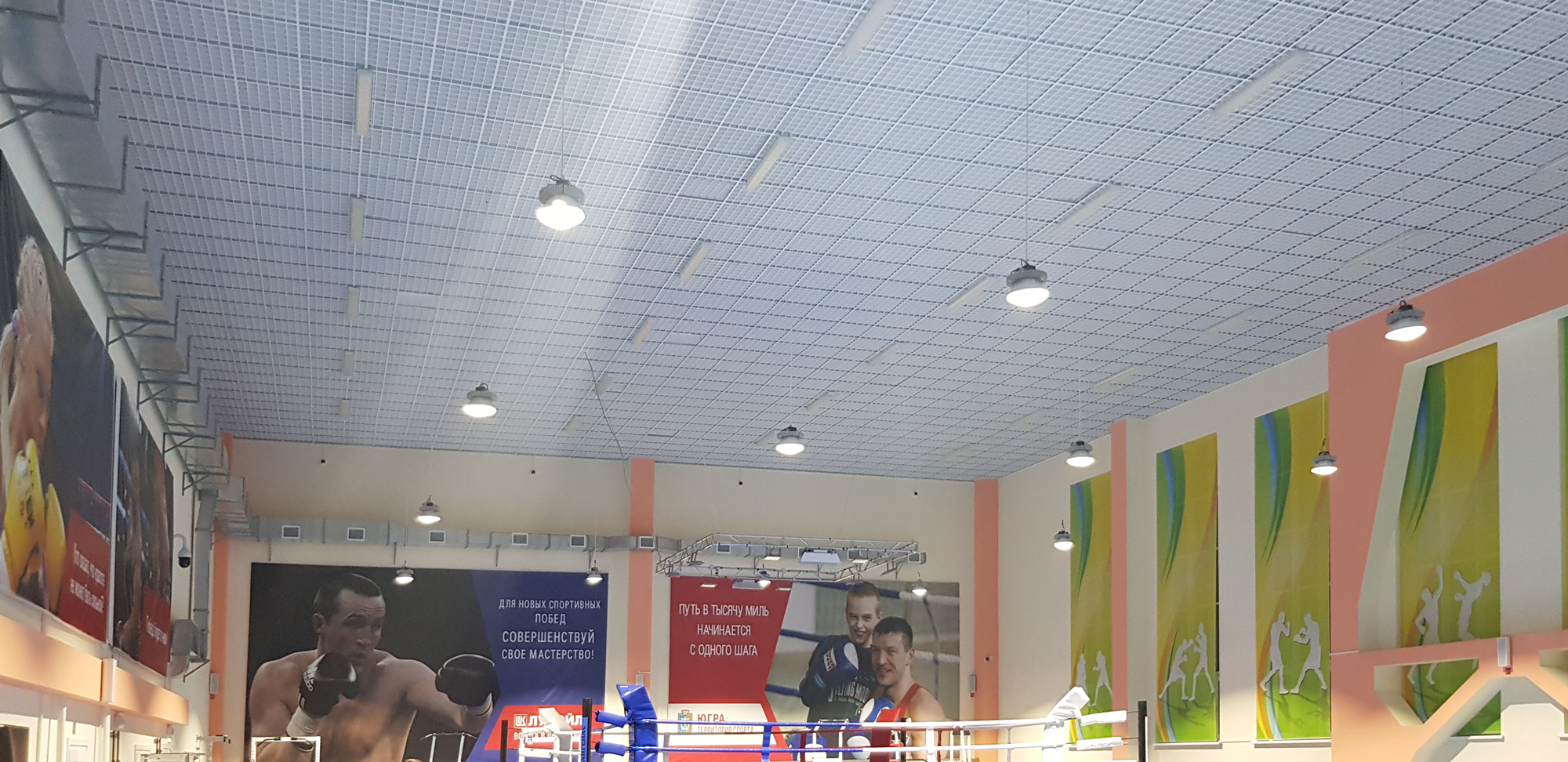 Поставленная задача: Освещение тренировочного зала бокса, замена устаревших светильников с лампами ДРЛ 450