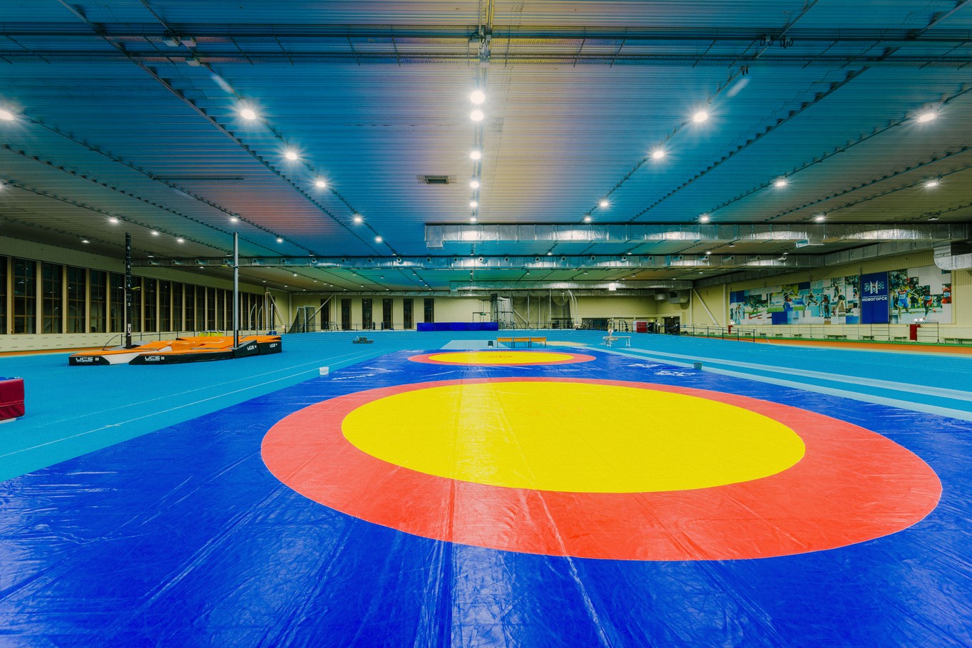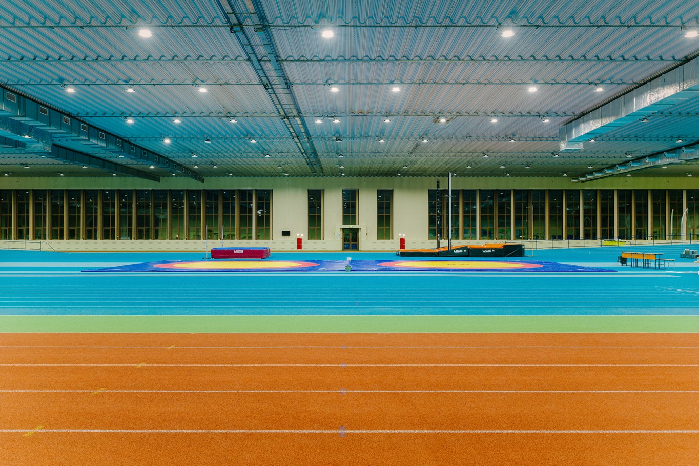 переосвещение крытого легкоатлетического манежа с целью экономии электроэнергии и повышения уровня освещенности.
