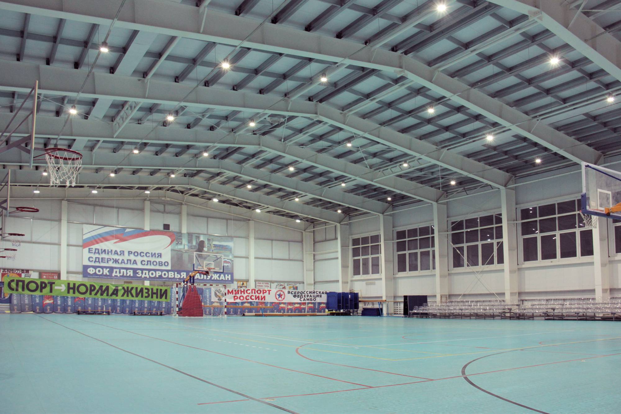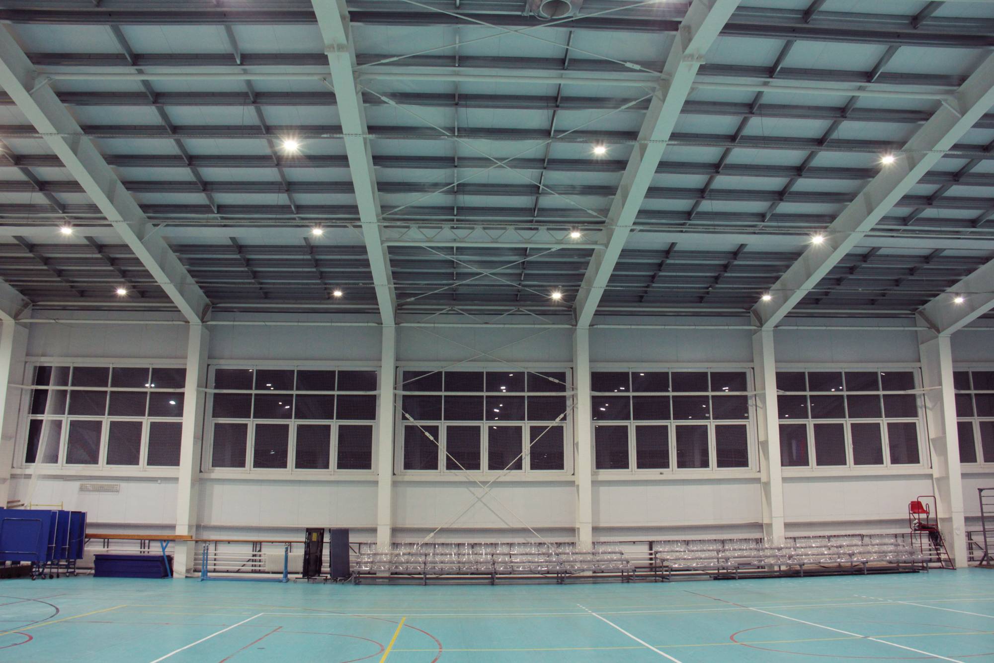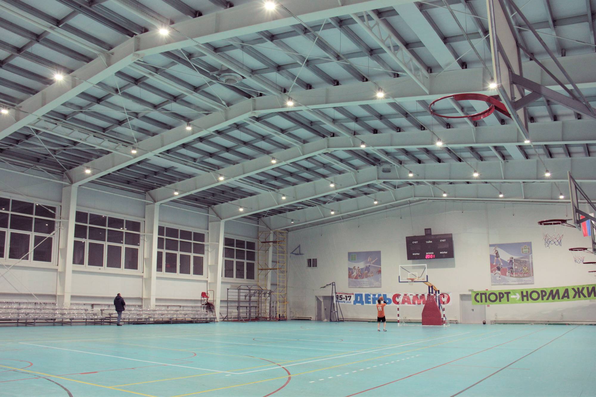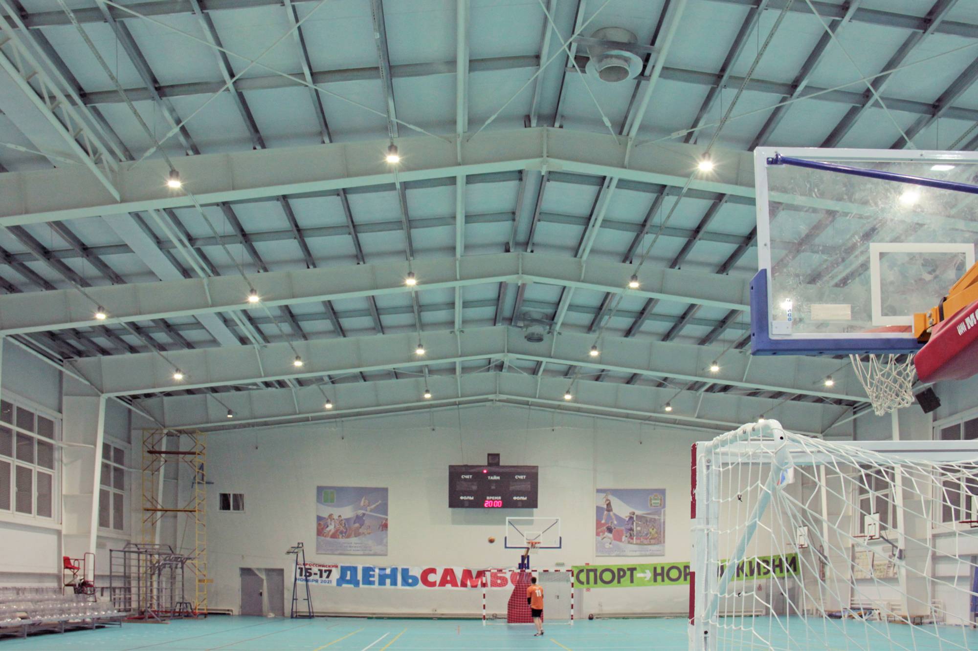 Предложенное осветительное решение: для освещения спортивного зала выбраны и установлены светодиодные светильники Профи v2.0 100 4500К 120° в количестве 54 штук.