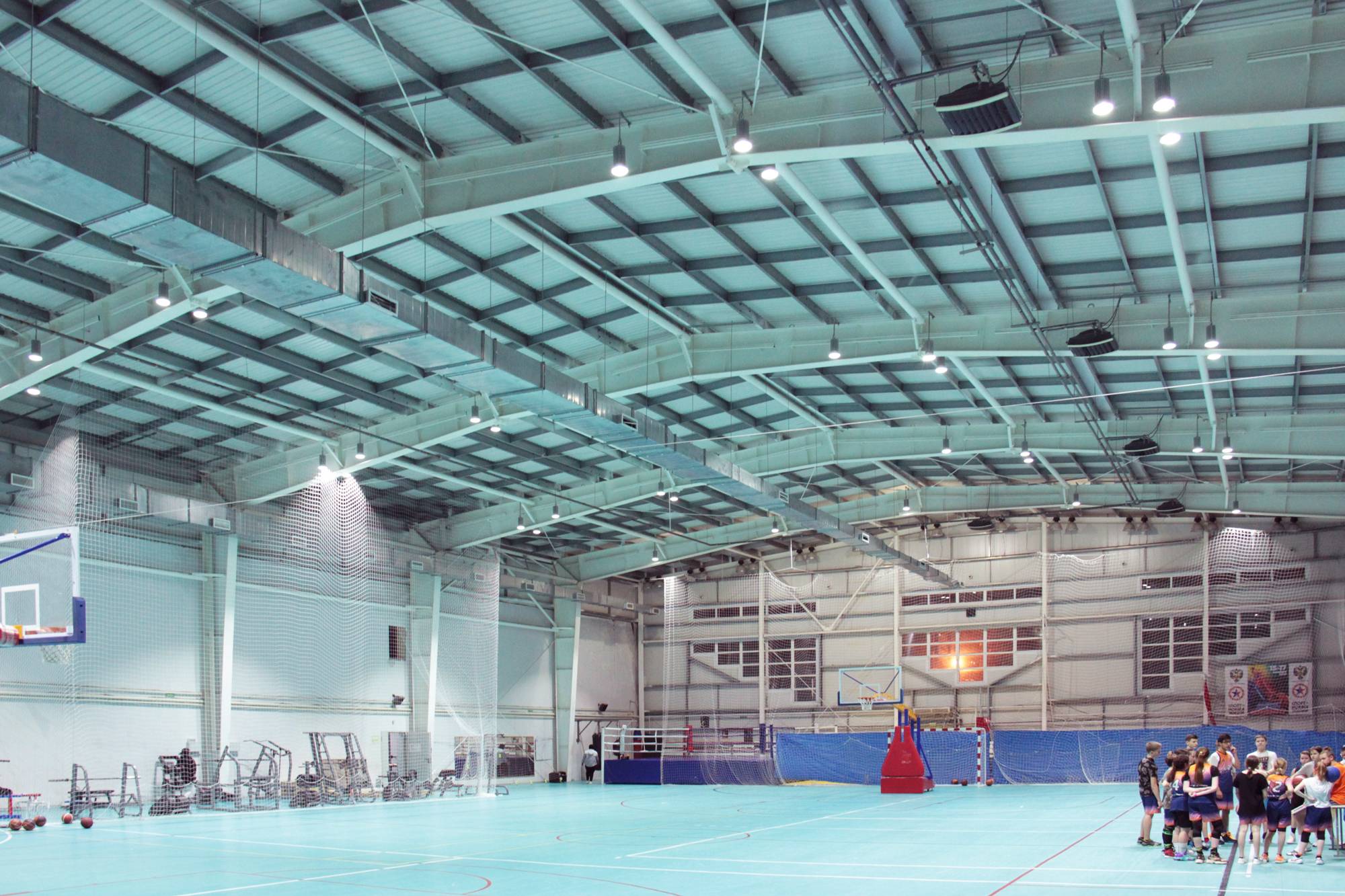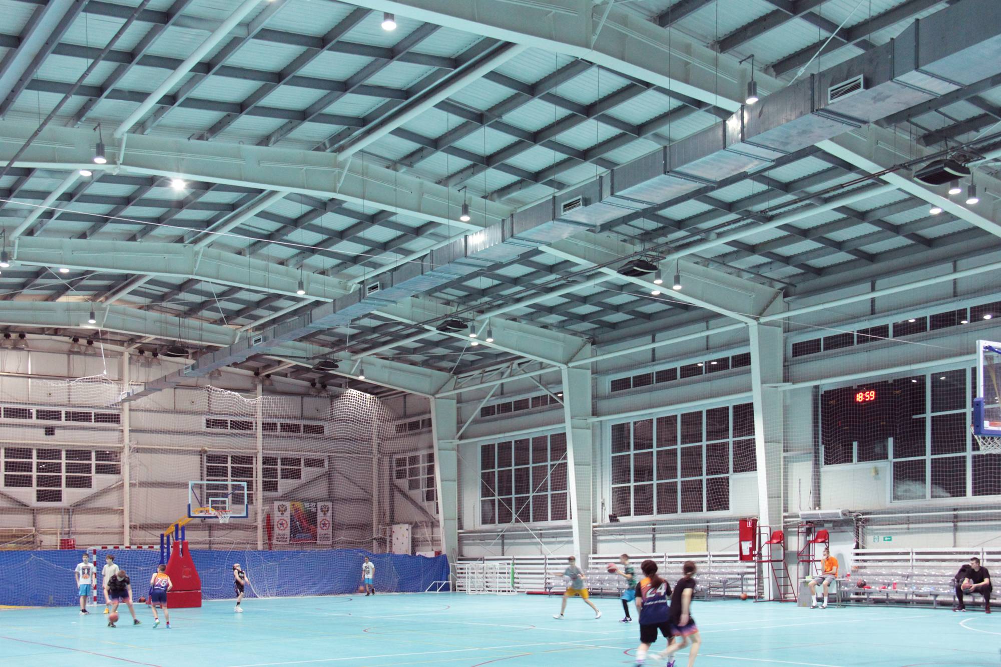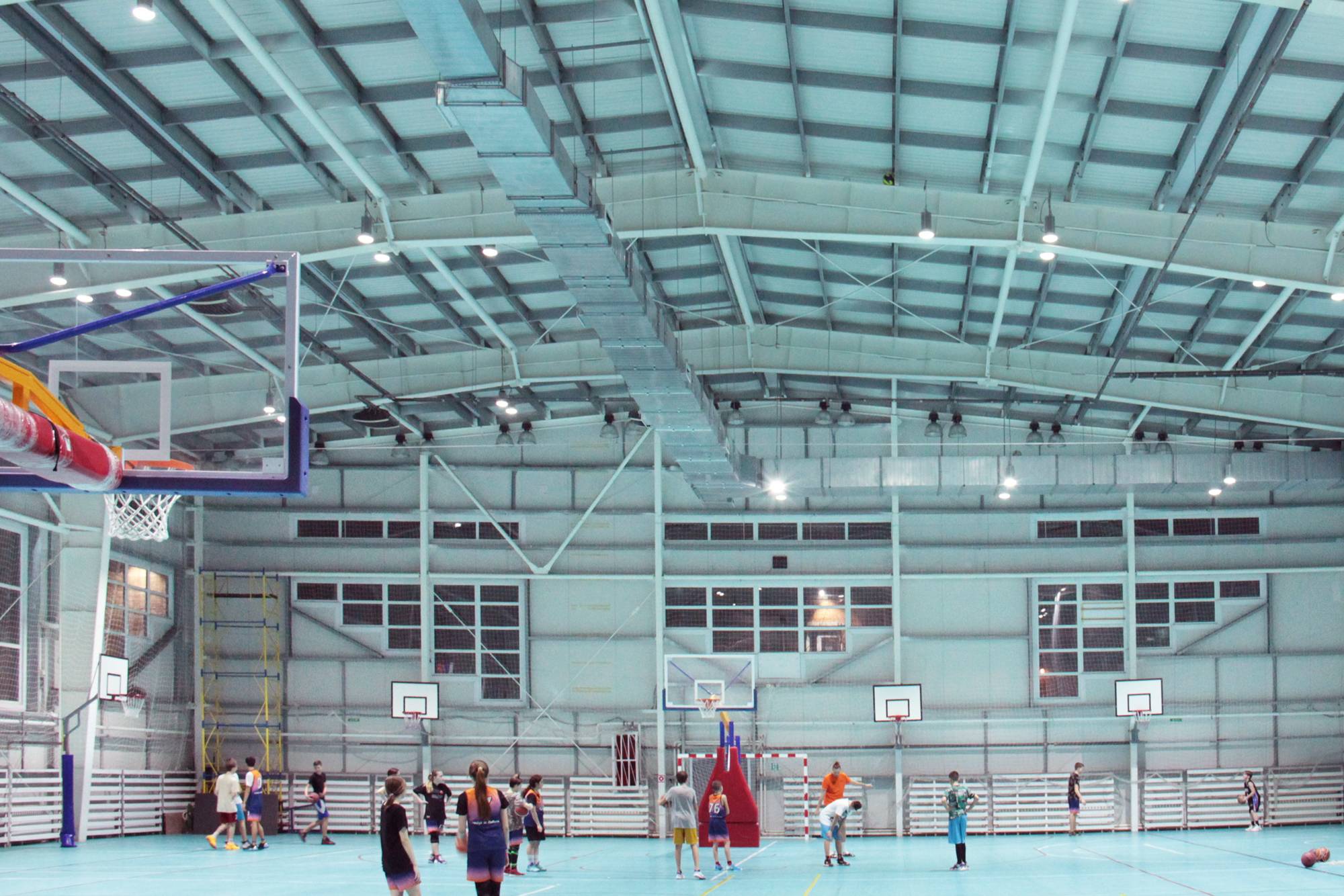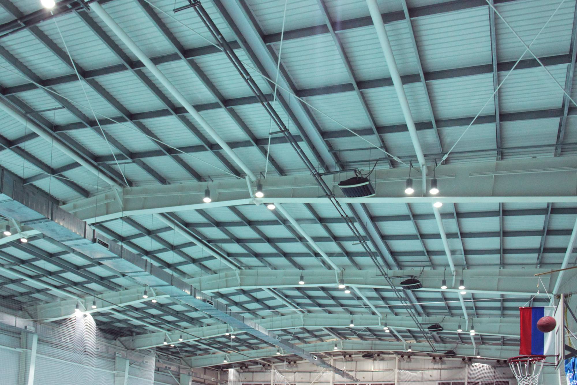 Предложенное осветительное решение: для освещения спортивного зала выбраны и установлены светодиодные светильники Профи v2.0 100 4500К 120° в количестве 49 штук.