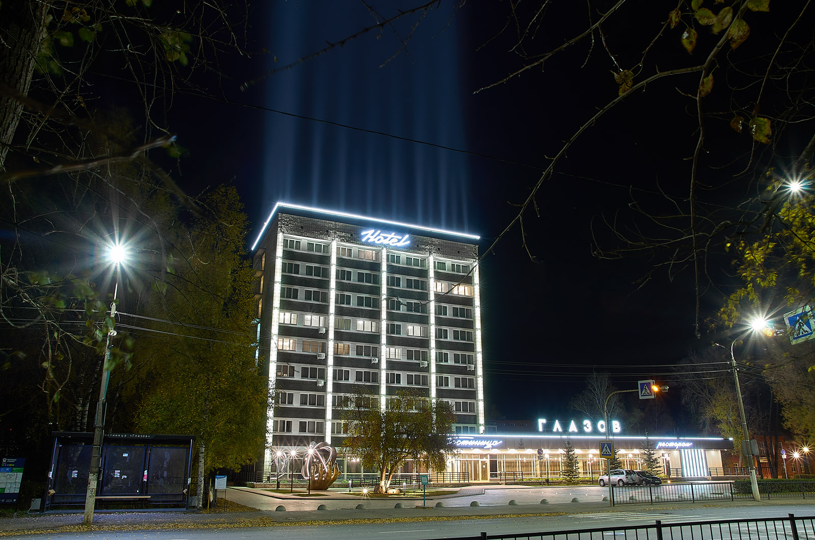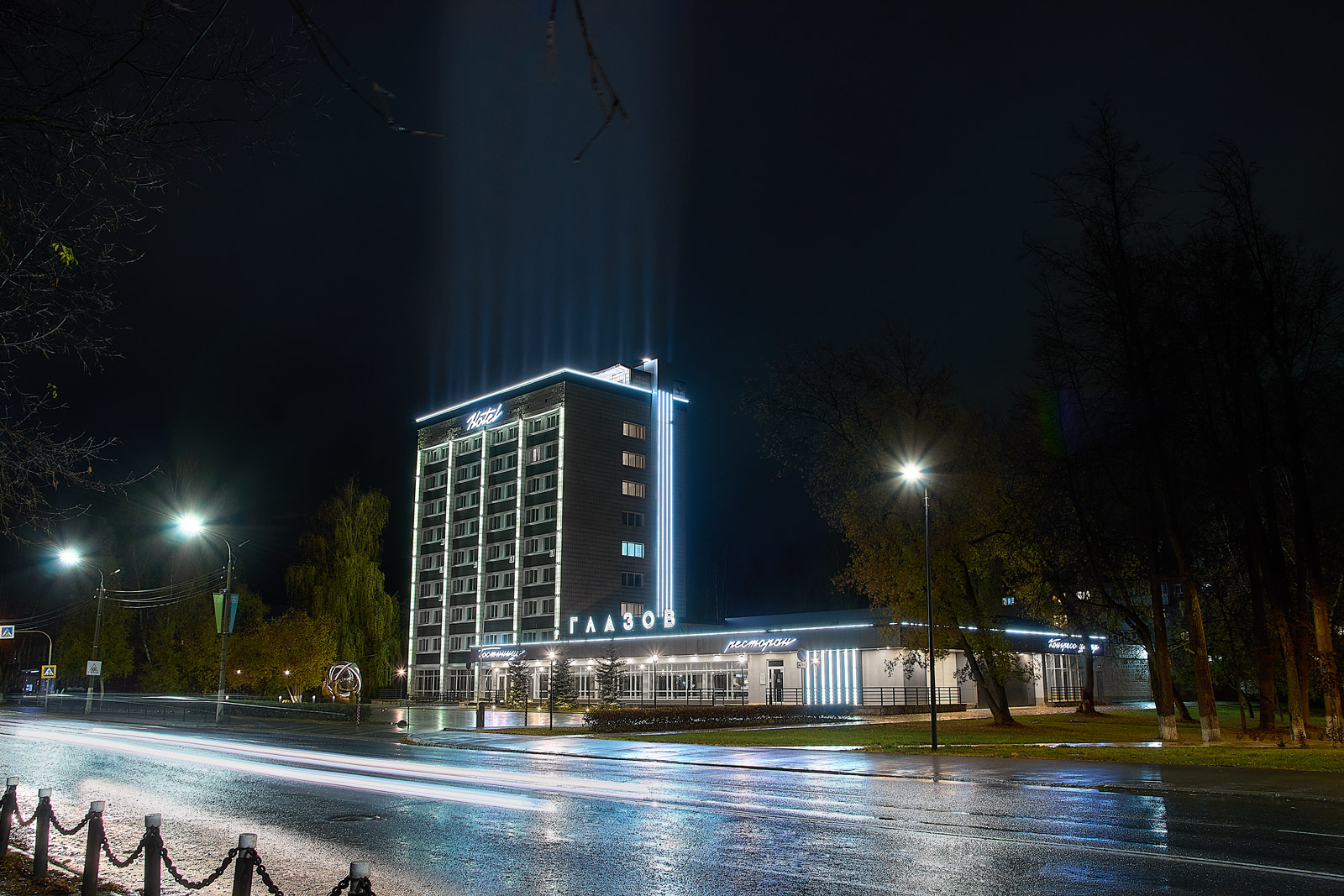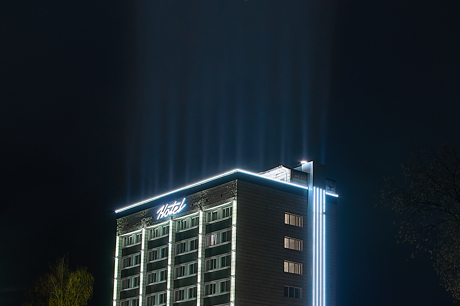 идея проекта заключалась в создании эффекта светящегося столба над зданием гостиницы.