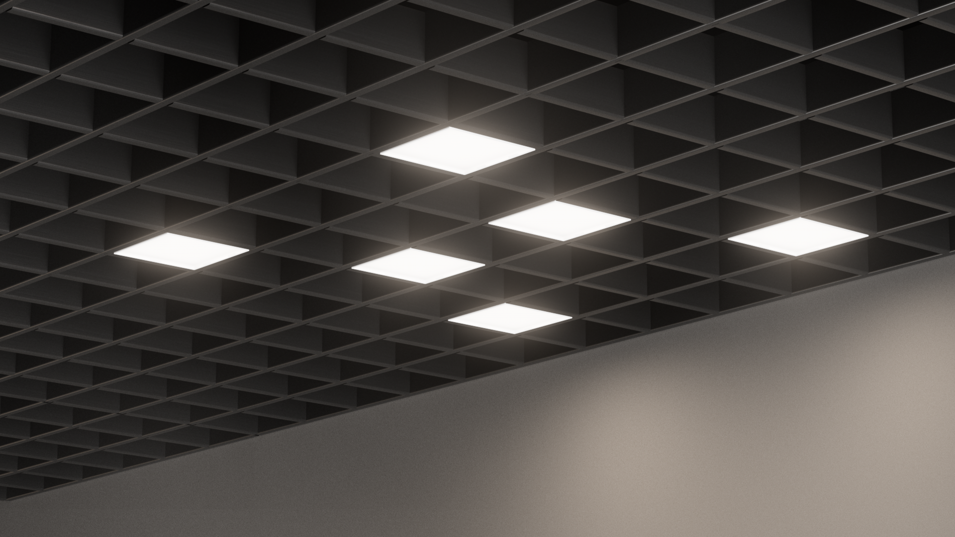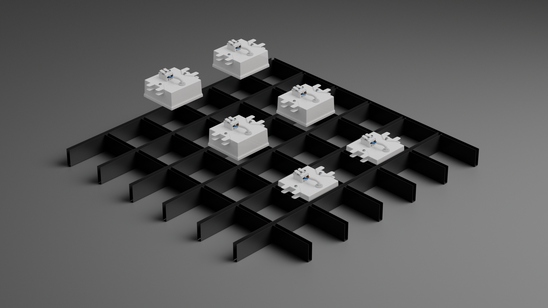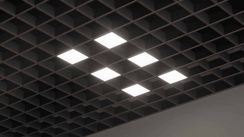 Такая система позволяет размещать светильники в ячейках потолков Грильято, создавая световые узоры из геометрических форм и тем самым реализовывать уникальные дизайнерские решения.