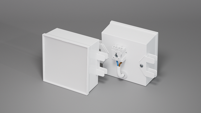 Легкий корпус светильника в белом цвете изготовлен из ABS-пластика методом литья под давлением.