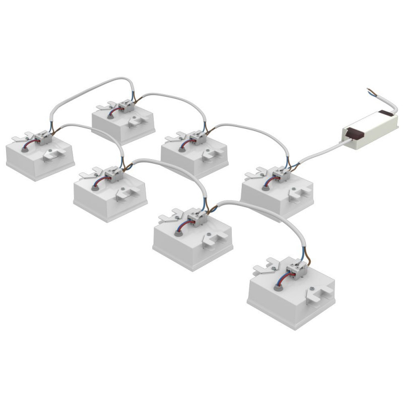 К одному драйверу подключаются несколько светильников в зависимости от комплектации, максимальное количество 7 штук.