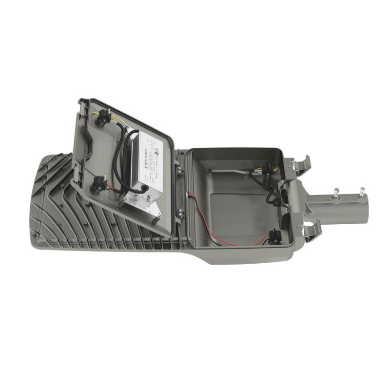 Источник питания выполнен в металлическом корпусе и залит теплопроводящим компаундом – за счёт этого снижается нагрев компонентов источника, поэтому он служит дольше. У светильника есть возможность горячей замены источника питания – без демонтажа светильника с опоры и отключения его от питающей сети. Источник питания защищен от микро- и наносекундных импульсов высокой энергии до 15 кВ.