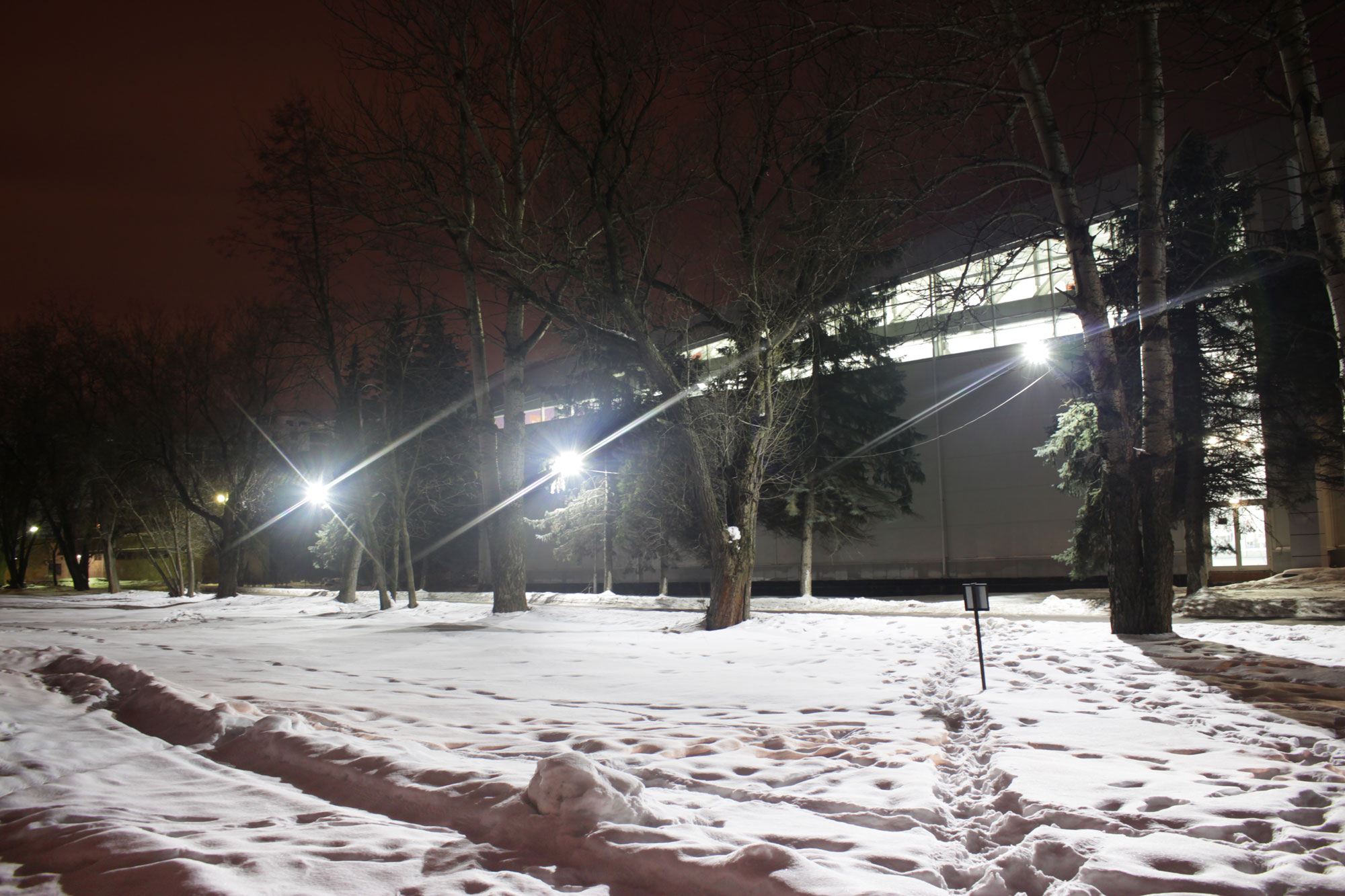 Предложенное осветительное решение: После предварительного светотехнического расчета установили уличные светодиодные светильники ПромЛед Кобра-110 Cree на имеющиеся возле здания столбы