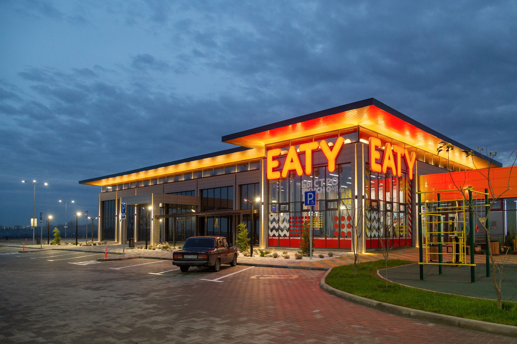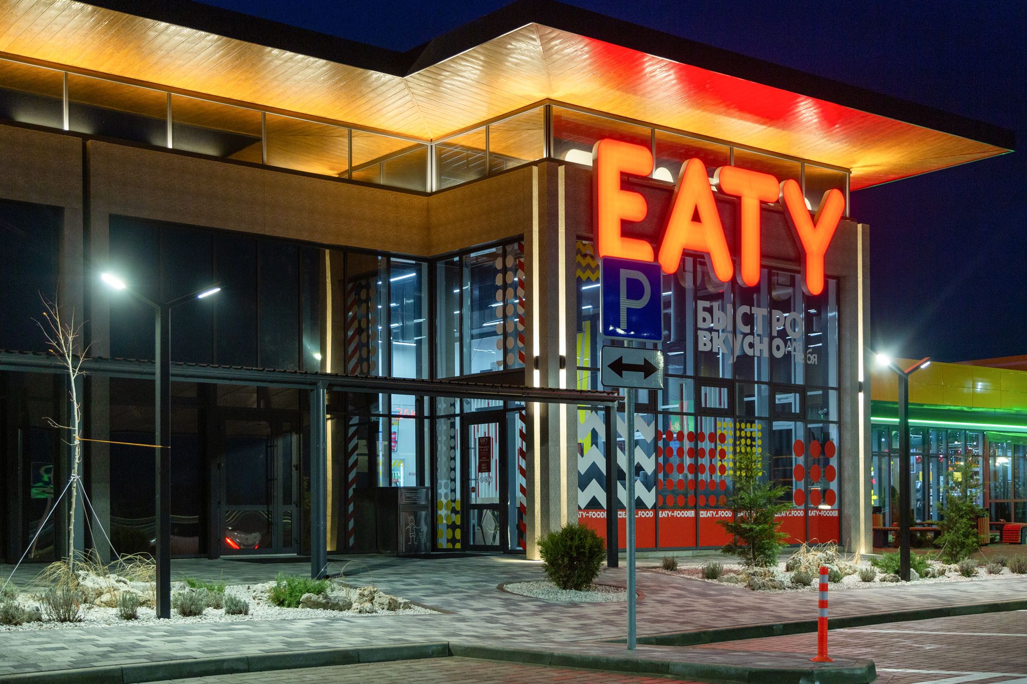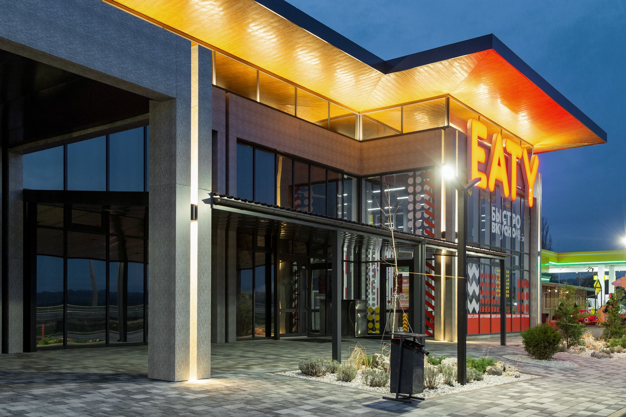 Поставленная задача: реализовать архитектурную подсветку кафе при АЗС «Атан».