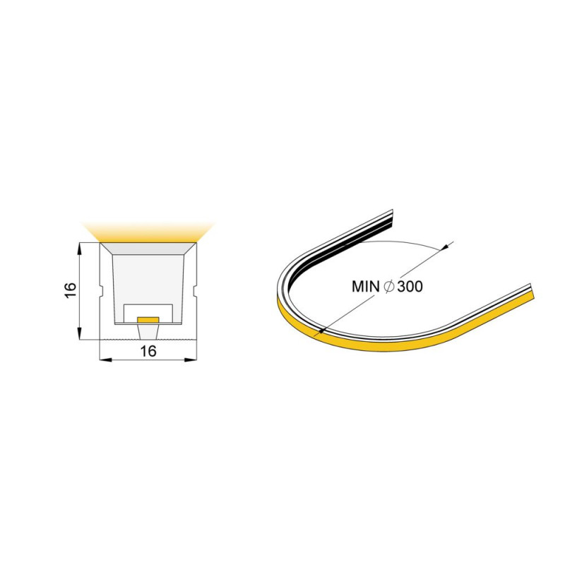 Светильники в исполнении с прямым свечением (16х16 мм) могут изгибаться в плоскости, перпендикулярной поверхности свечения.