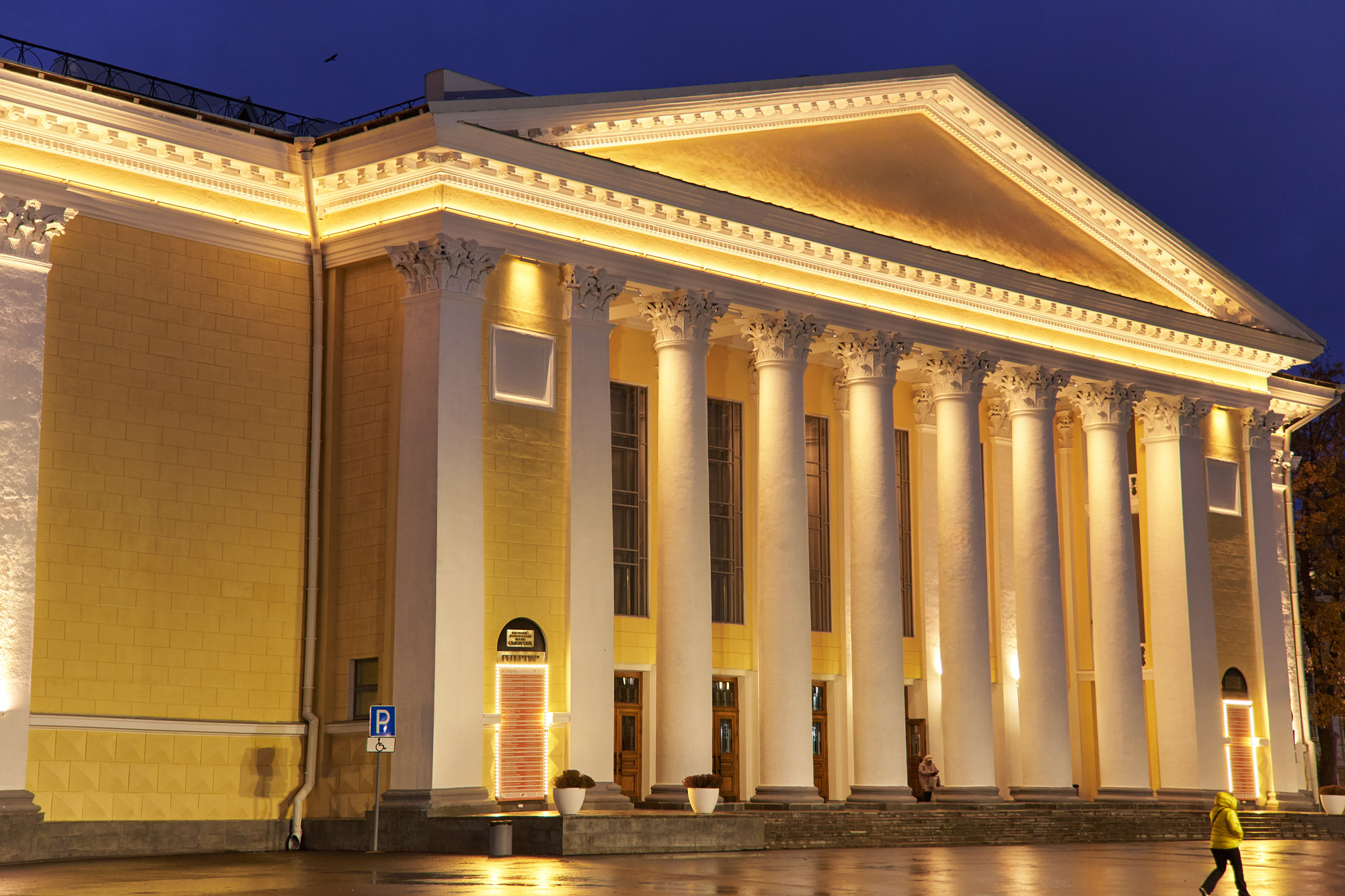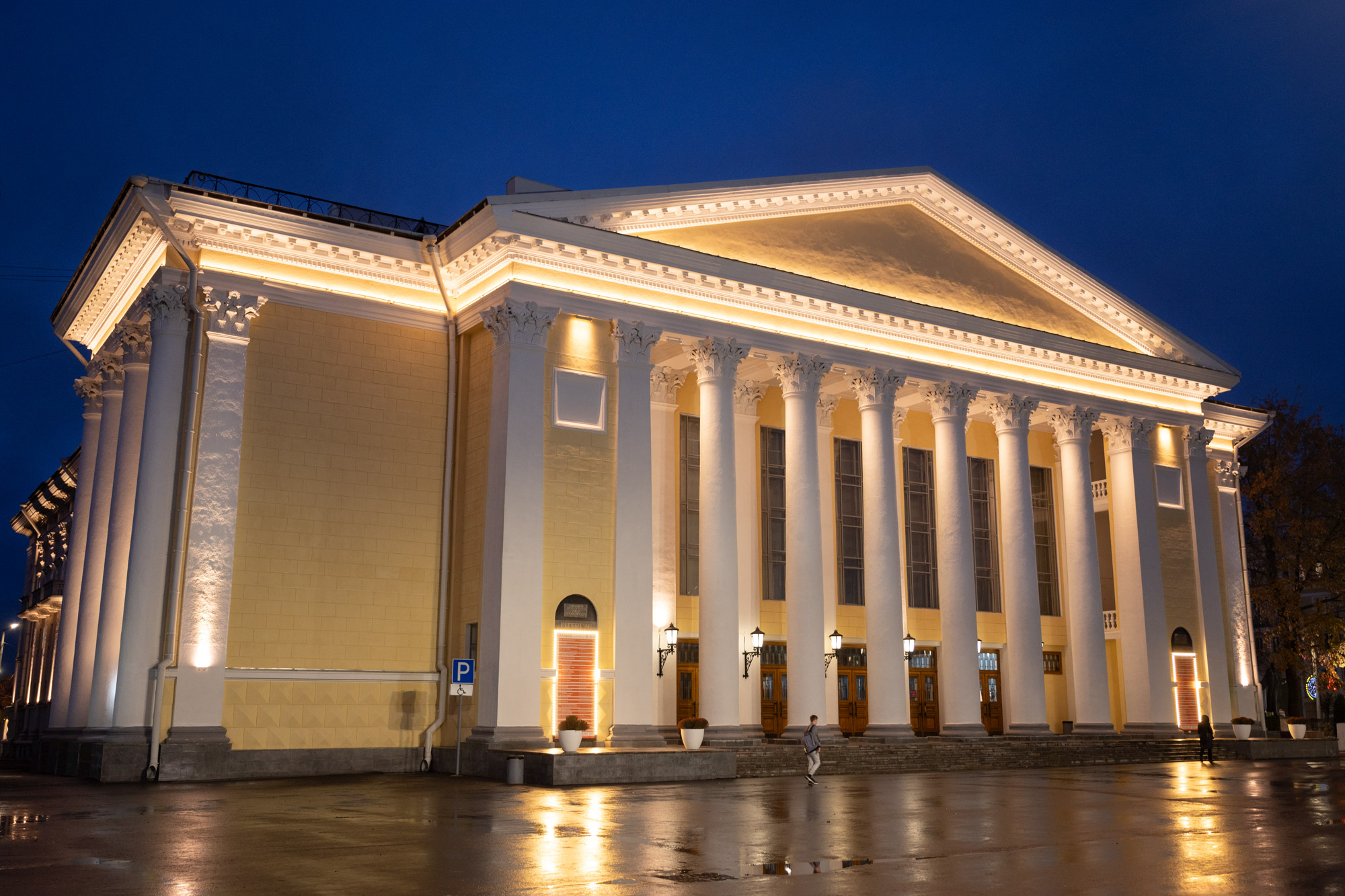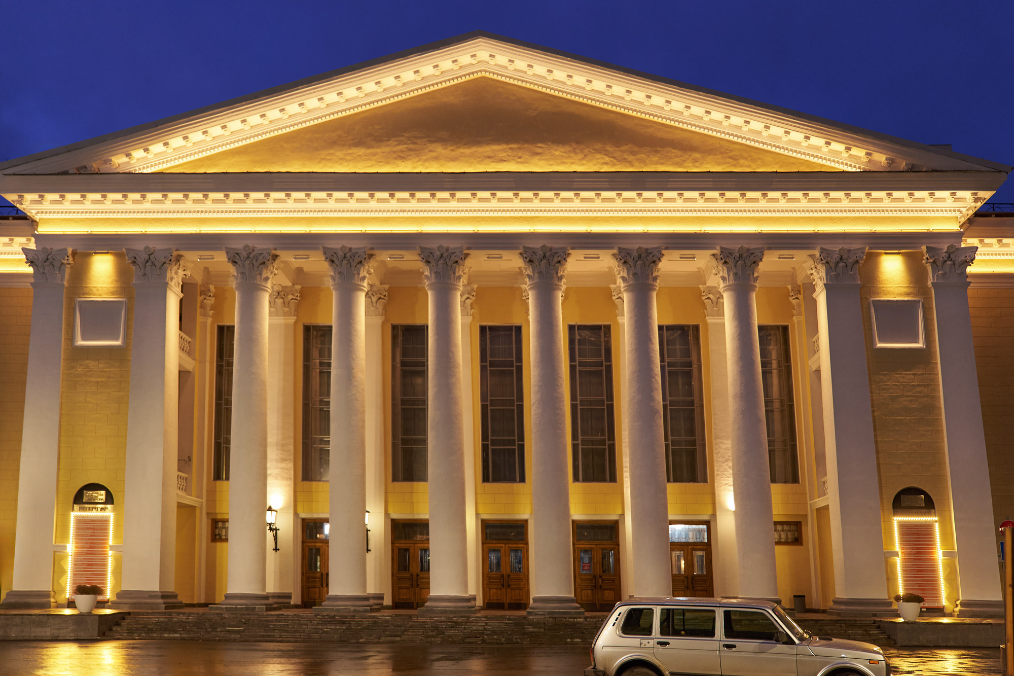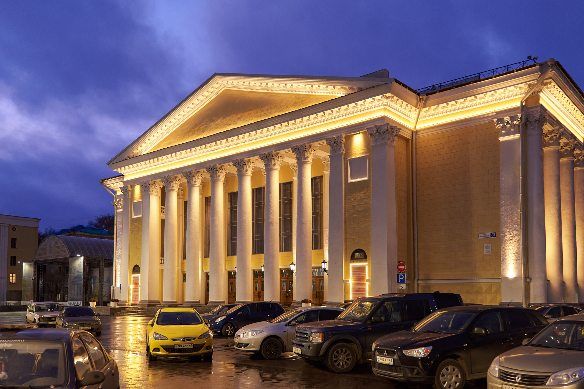 в рамках глобальной реконструкции кировского драматического театра компанией ООО «РА ДИЗАЙН-ЭКСПРЕСС» был осуществлен выезд на объект, подбор и поставка оборудования для архитектурной подсветки обновленного фасада здания.