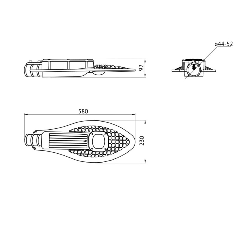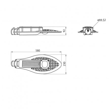 Литой алюминиевый корпус с порошковым покрытием, дизайн которого имеет не только эстетическую, но и практическую ценность. Благодаря решетчатой форме в корпусе не задерживаются осадки, поэтому не создаётся дополнительная нагрузка на опору.