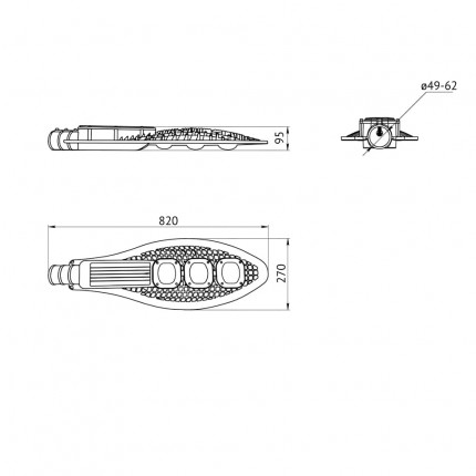 Литой алюминиевый корпус с порошковым покрытием, дизайн которого имеет не только эстетическую, но и практическую ценность. Благодаря решетчатой форме в корпусе не задерживаются осадки, поэтому не создаётся дополнительная нагрузка на опору.