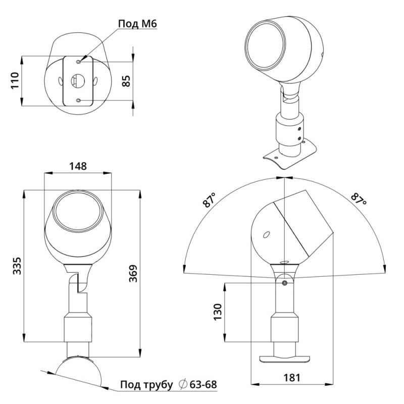 Аксессуар. Шелл. Кронштейн на опору диаметром 63-68