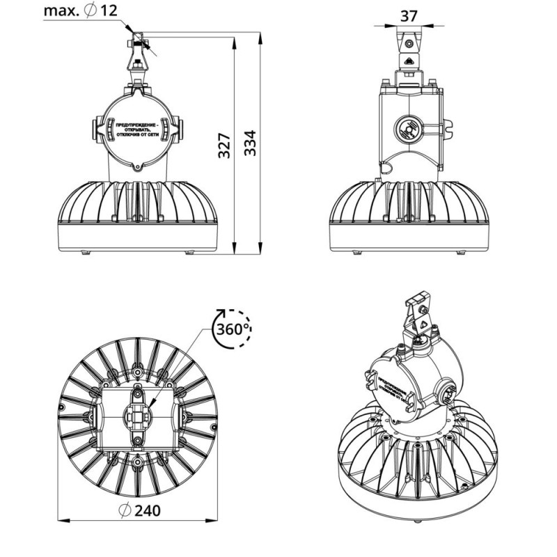 | Габаритные размеры, не более, [мм] | Ø240х334 |