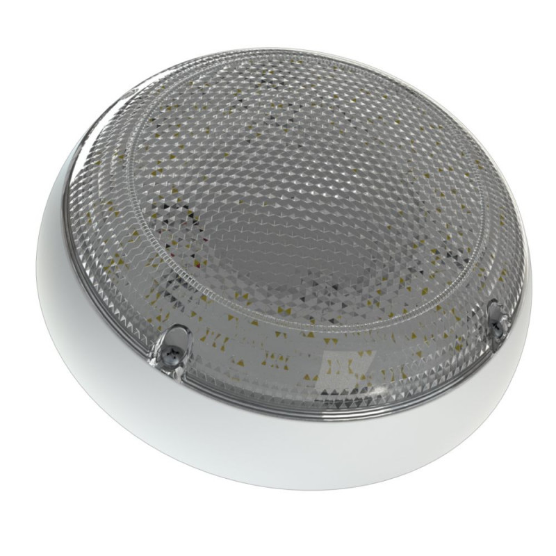 Источник питания в круглом пластиковом корпусе установлен внутри светильника и оснащен встроенным БАП.