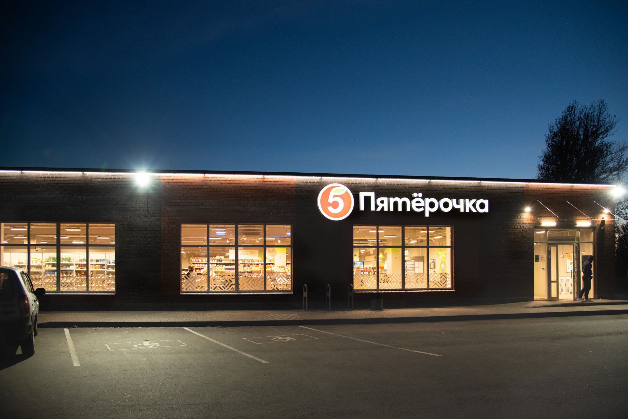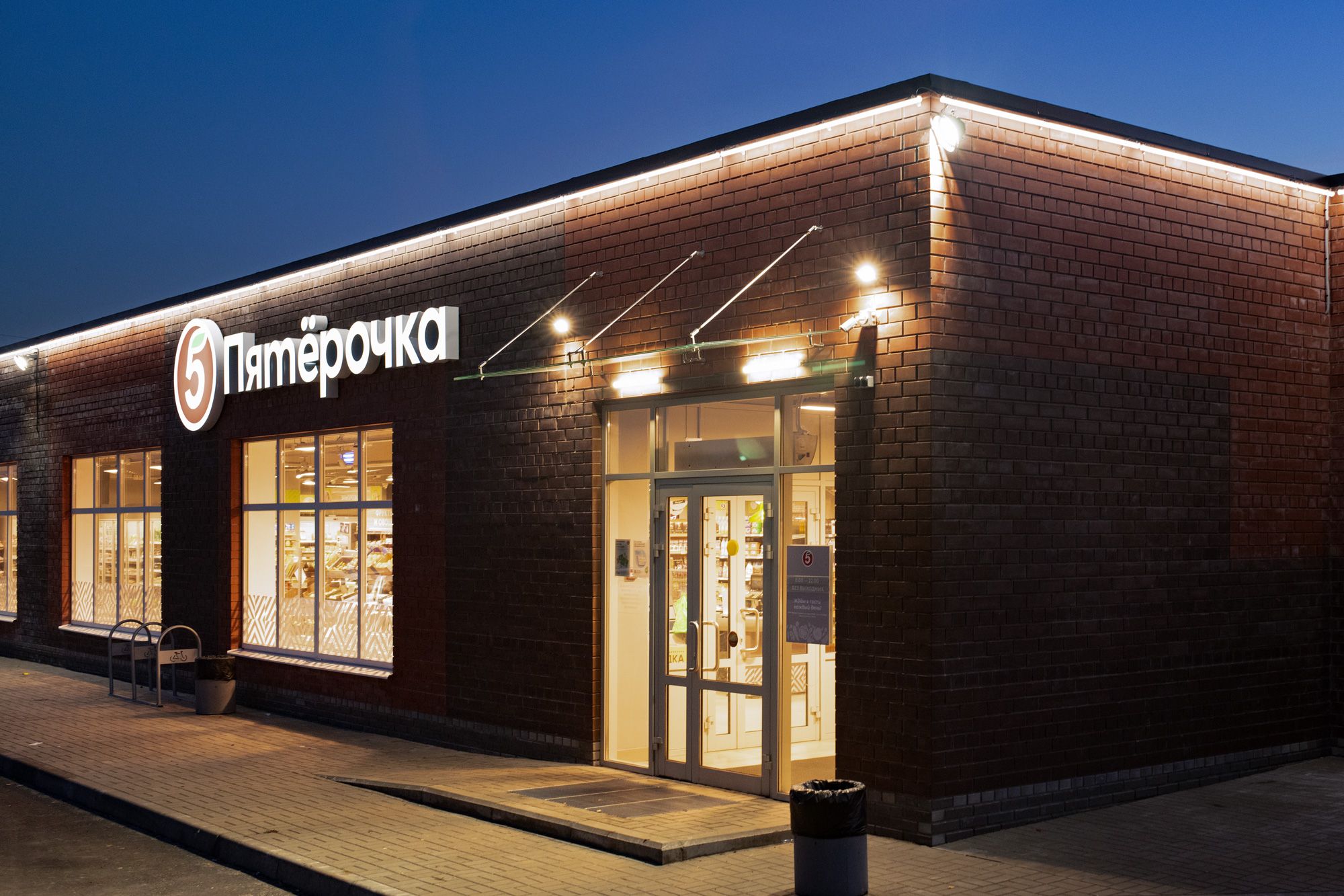 Поставленная задача: выполнить архитектурную подсветку здания магазина «Пятерочка».