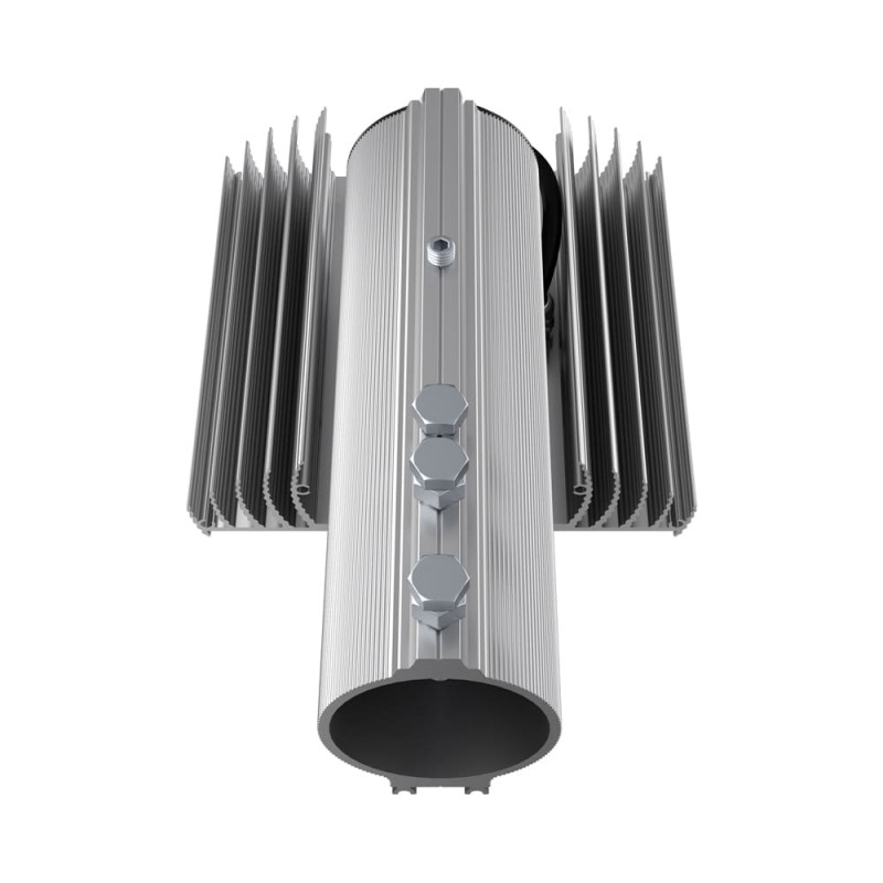 Экструдированный корпус выполнен из анодированного алюминия и имеет большую площадь отдачи тепла (за счёт ребер и волнообразных изгибов).