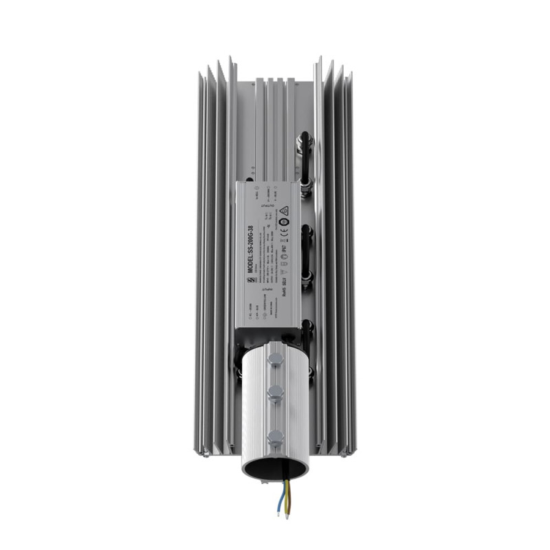 В зависимости от мощности светильника источник питания расположен либо внутри крепёжной консоли, либо на корпусе.