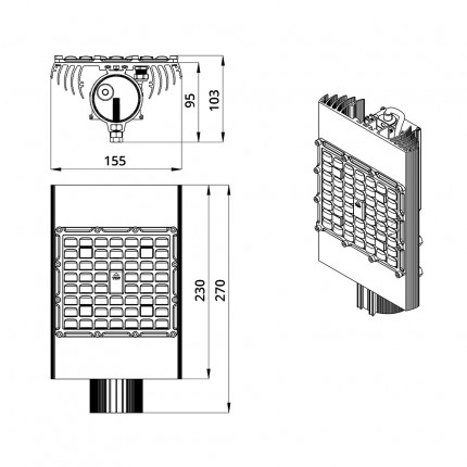 Светильники крепятся на консоль круглого сечения диаметром до 57 мм.