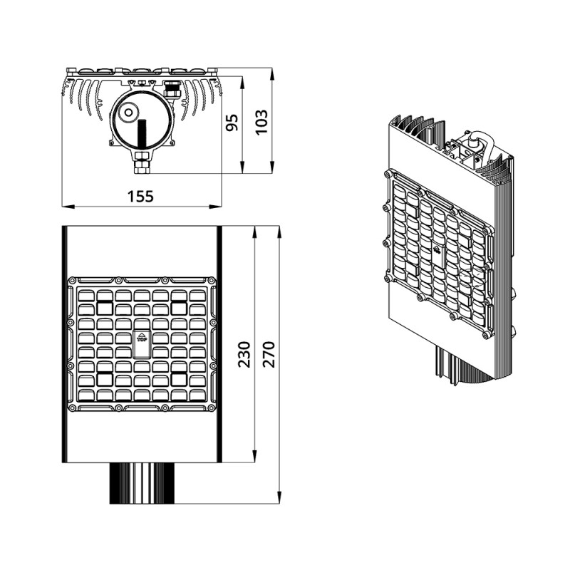В зависимости от мощности светильника источник питания расположен либо внутри крепёжной консоли, либо на корпусе.