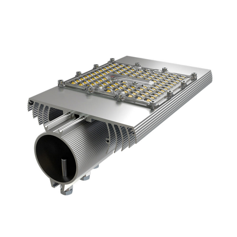 Алюминиевая светодиодная плата изготовлена по SMT-технологии. Значительное количество диодов, равномерно распределённых по большой площади, обеспечивает высокую эффективность светильника. Светодиоды работают при низких токах (50% от номинальных и ниже), что повышает эффективность светильника и увеличивает срок его службы.