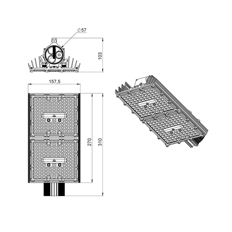 Светильники крепятся на консоль круглого сечения диаметром до 57 мм.