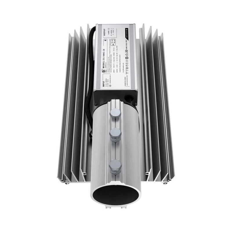 В зависимости от мощности светильника источник питания расположен либо внутри крепёжной консоли, либо на корпусе.