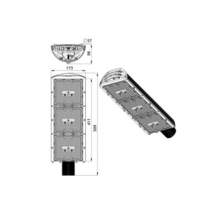 Светильники крепятся на консоль круглого сечения диаметром до 57 мм. Данная серия не имеет возможности регулировки угла наклона светильников.