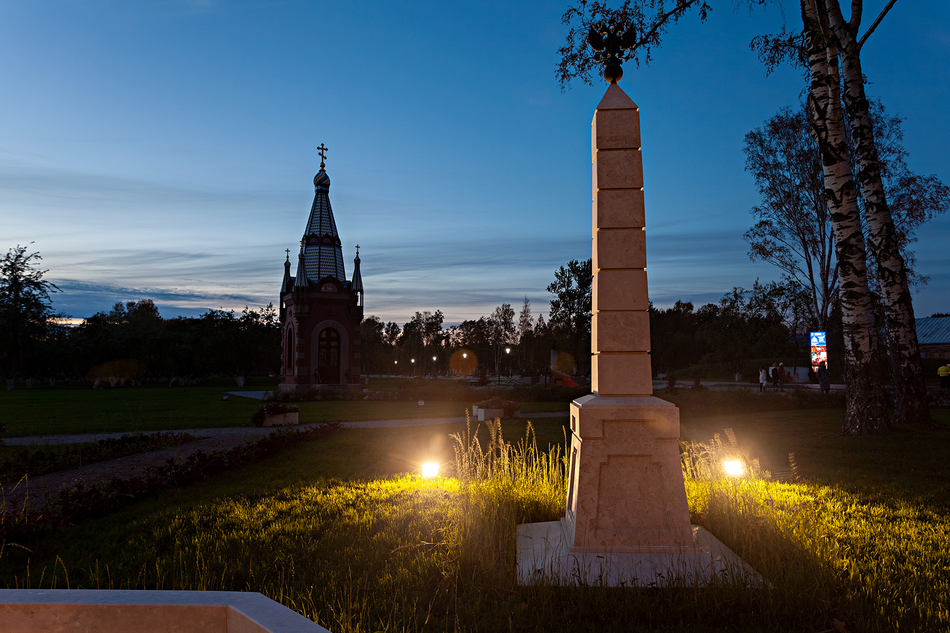 Предложенное осветительное решение: Для подсветки стен на задней части мемориальных плит были установлены светильники направленного свечения Прожектор v2.0 Мультилинза 30 ЭКО 3000К 90° в количестве 10 штук. Поставку и монтаж осуществила компания ООО «ЛЭД СТРИМ»