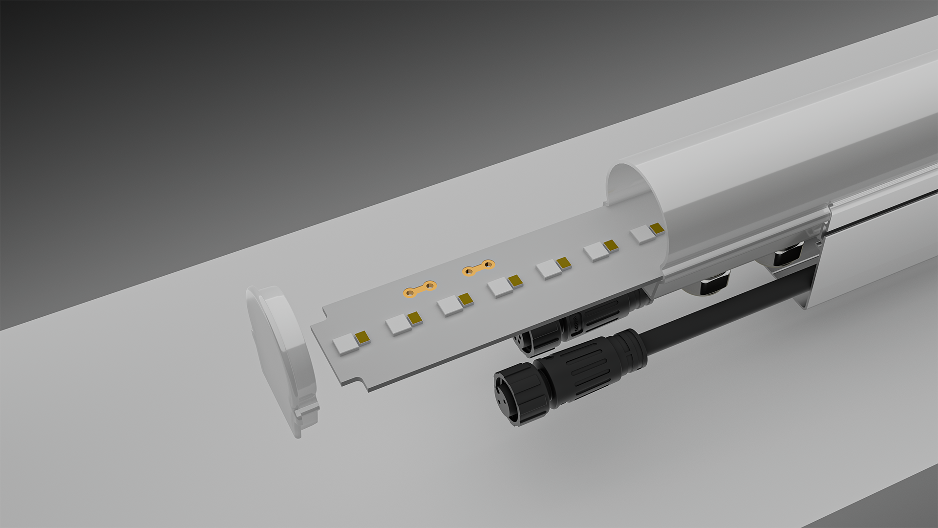 Корпус представляет собой трубку из УФ-стабилизированного поликарбоната диаметром 31 мм.