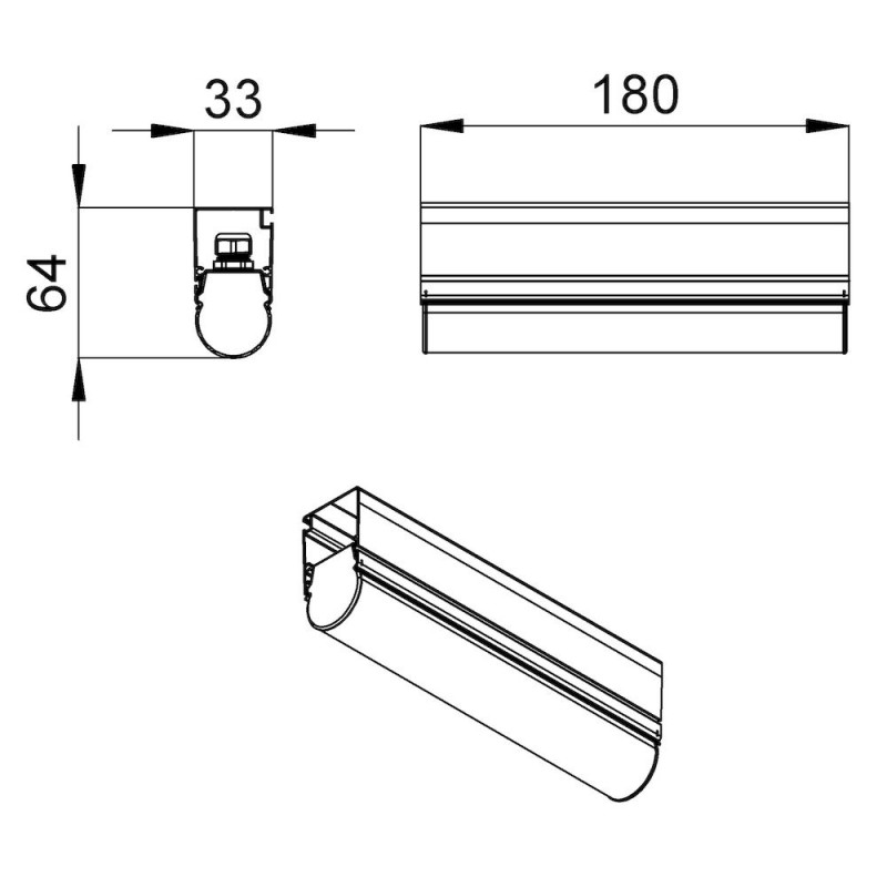 Модерн v2.0 1 180мм (6Вт/м) 24В DC CRI80 3000К Опал (Профиль, транзитное штепсельное соединение)