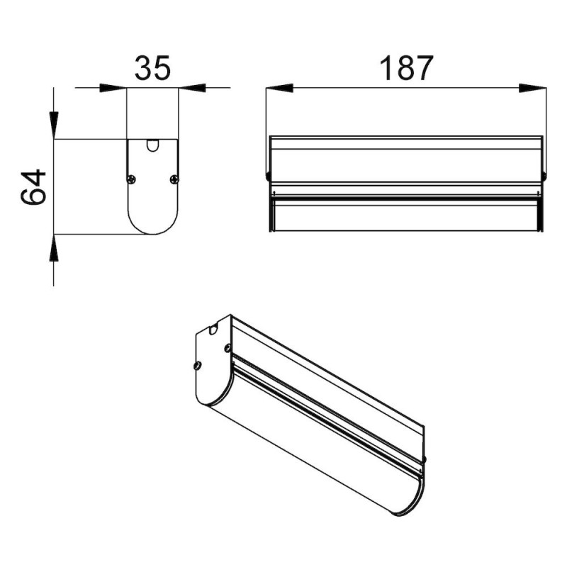 Светильник комплектуется монтажным профилем, в котором размещаются элементы проводки, используемые для транзитного подключения. При необходимости можно скрыть источник освещения, дополнив профиль специальным алюминиевым козырьком, что особенно востребовано при контурной подсветке. Монтажный профиль и козырек могут быть покрыты порошковой краской в цвет фасада, что позволяет гармонично интегрировать светильник в архитектурное окружение.