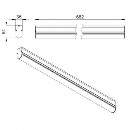Базовый типоразмер светильника – 1000 мм. Возможно изготовление светильников меньшей длины для выстраивания линий требуемой протяженности.