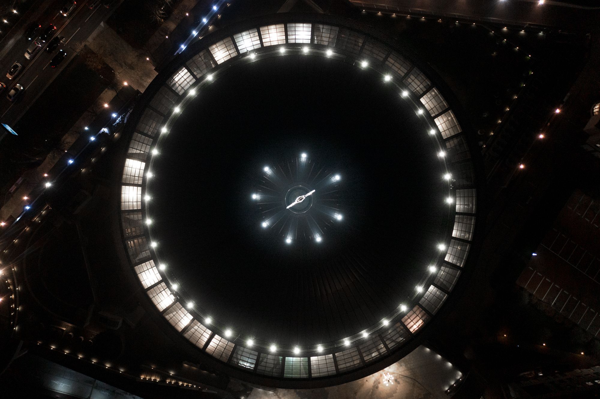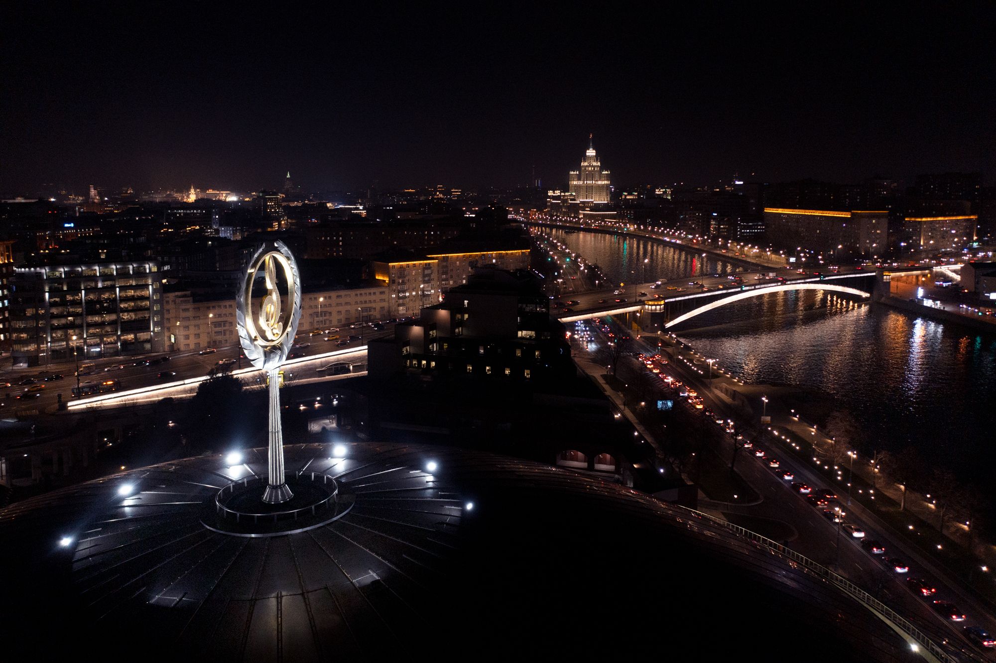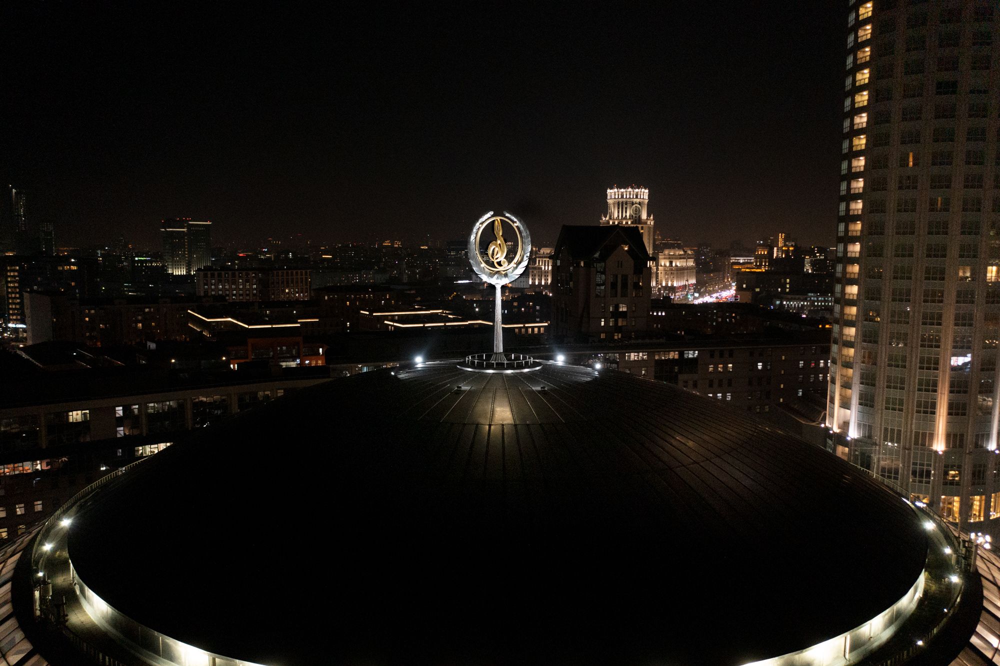 Поставленная задача: освещение скульптуры скрипичного ключа на крыше.
